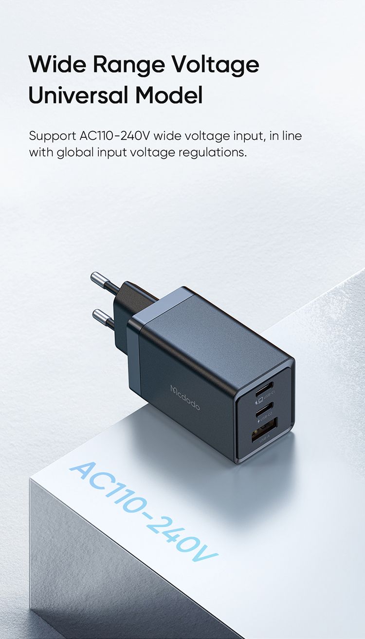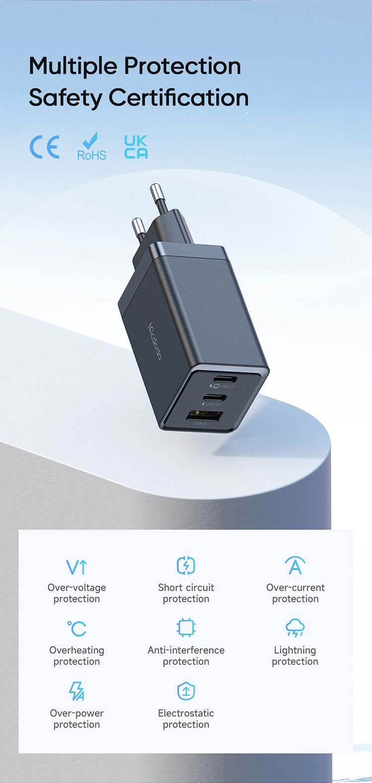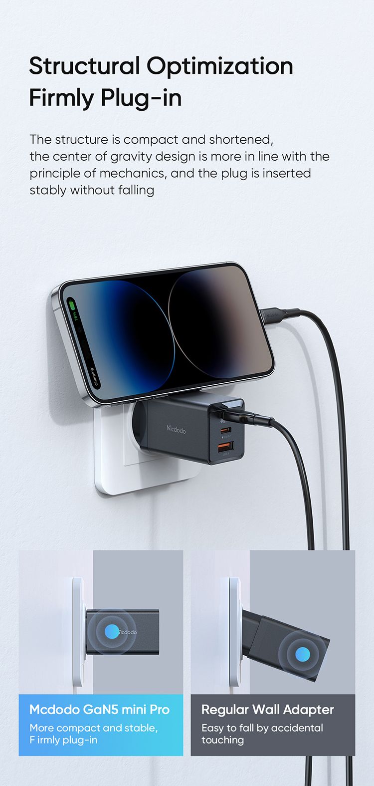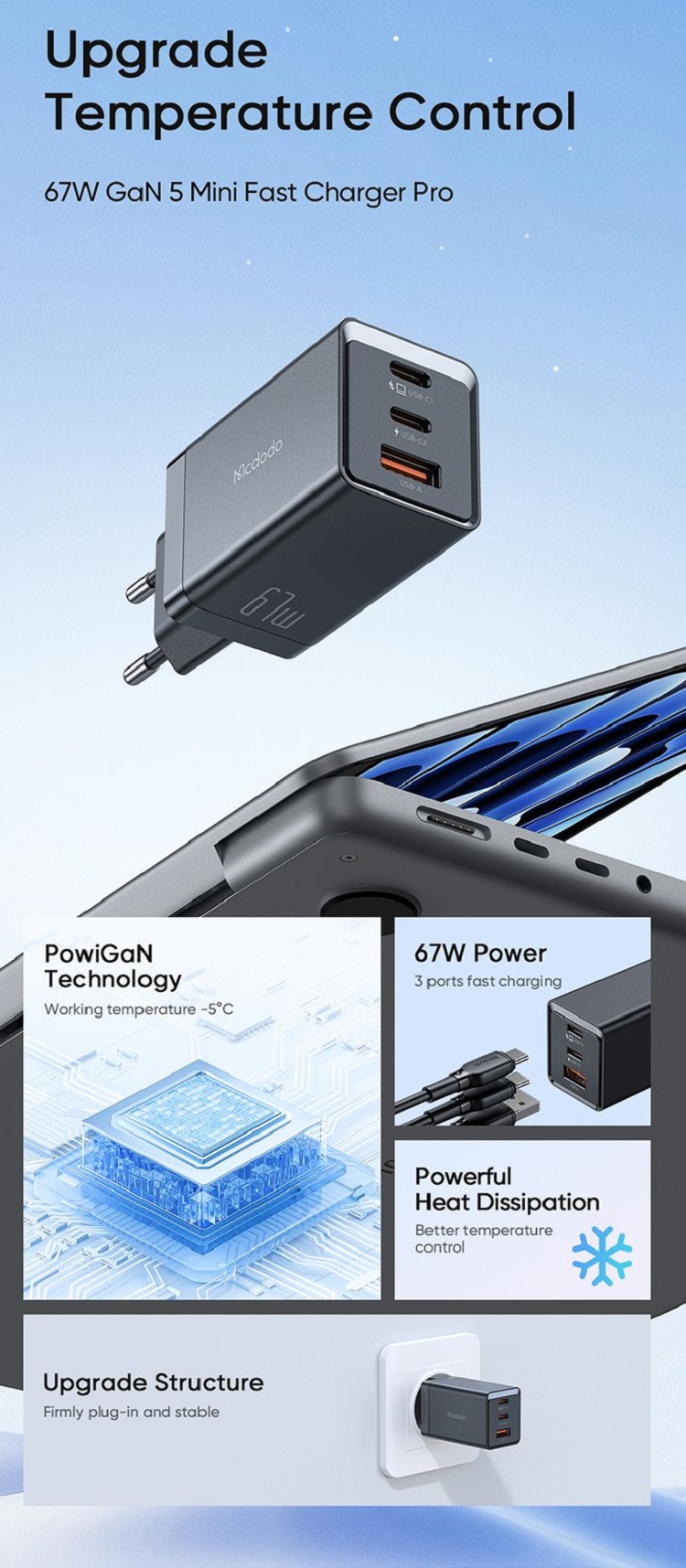 Mcdodo Incarcator Retea GaN5 Mini Pro Fast Charger 67W, Port 2xType-C+ 1xUSB-A, Plug EU, Black