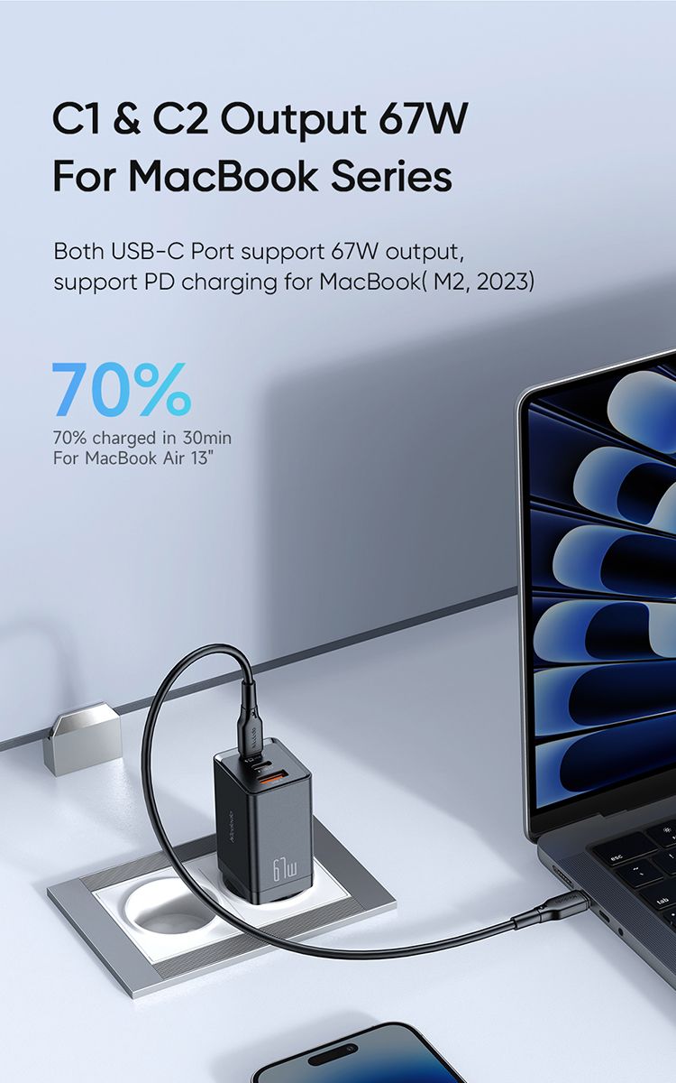 USB-C2:5V⎓3A, 9V⎓3A, 12V⎓3A, 15V⎓3A, 20V⎓3.35A, 67W Max.