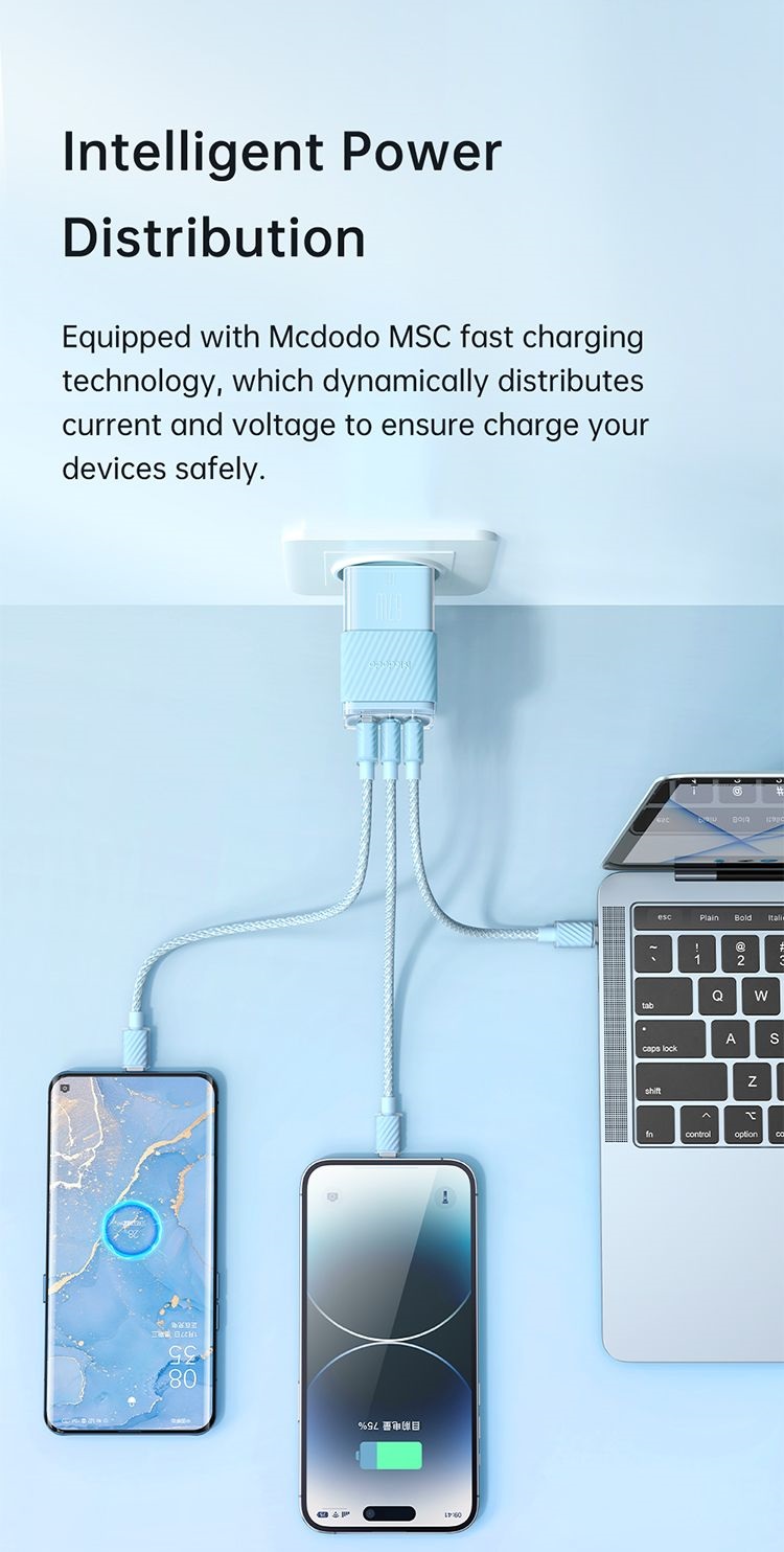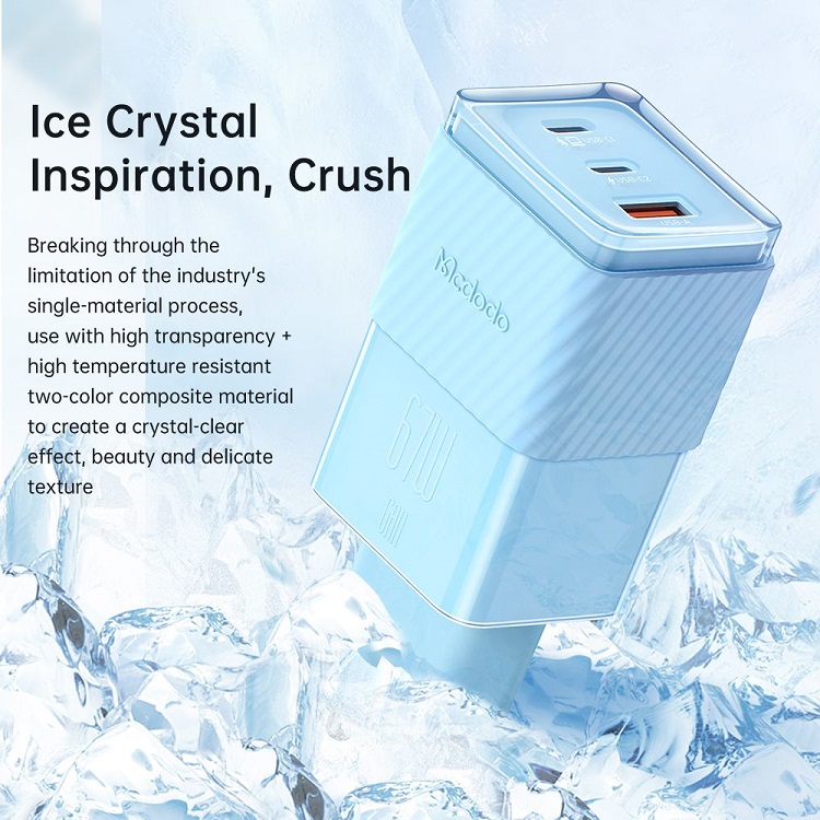 Incarcatorul Retea Port 2xType-C si 1xUSB-A Dichromatic GaN5 Mini, Fast Charging PD 67W,de la Mcdodo are un design bine gandit ce asigura nu numai functionalitate, ci si fiabilitate si confort.