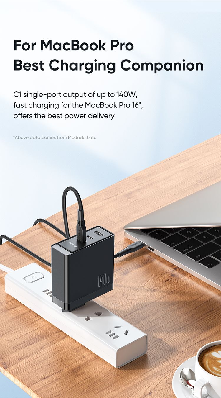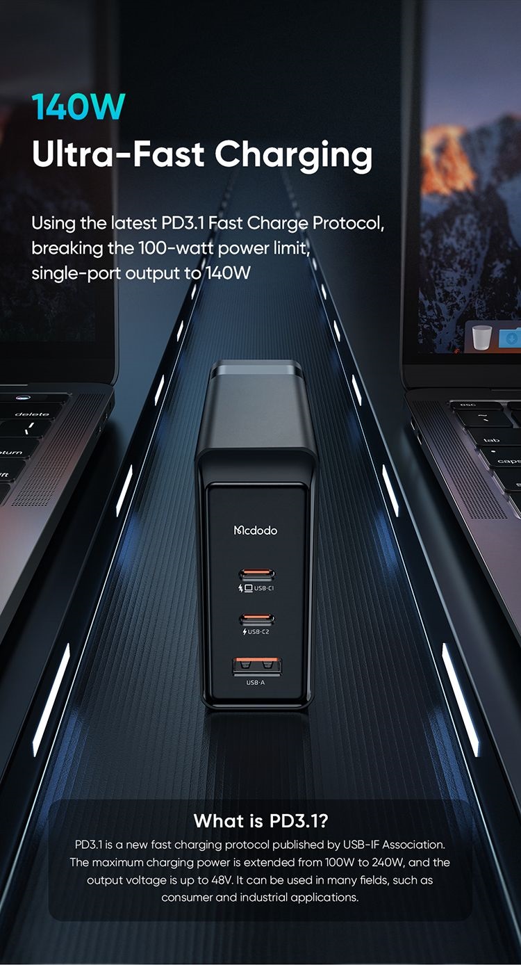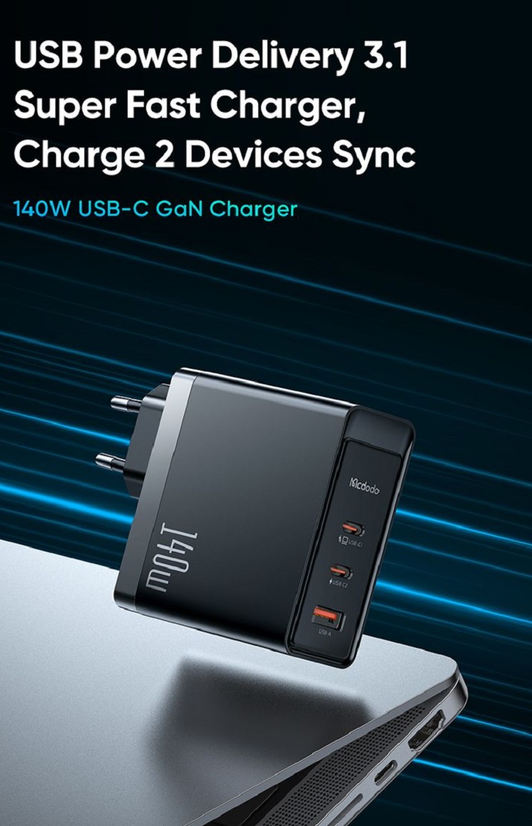 Incarcatorul Retea Port 2xType-C si 1xUSB-A GaN5 Pro Fast Charging dela Mcdodo suporta cele mai populare protocoale de incarcare rapida si ofera o sursa de alimentare de pana la 140W. La dispozitia dumneavoastra sunt pana la 3 porturi (2 USB-C si 1 USB-A), cu care puteti alimenta puterea dispozitivelor in cel mai scurt timp. Incarcatorul utilizeaza tehnologia GaN, iar PC-ul ignifug este utilizat pentru constructia sa. In acelasi timp, este extrem de usor si la indemana, astfel incat sa il puteti potrivi cu usurinta in rucsac.