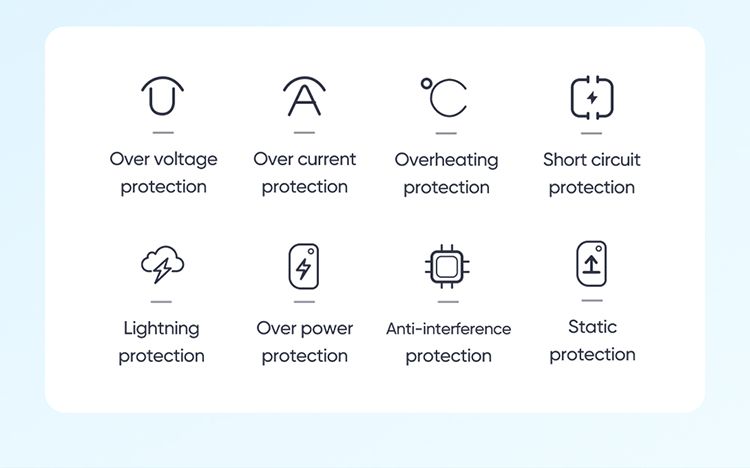Incarcatorul de alimentare este echipat cu un cip inteligent care detecteaza automat dispozitivul conectat. Acest lucru ii permite sa ajusteze sursa de alimentare la nivelul potrivit pentru a reface in siguranta bateria.