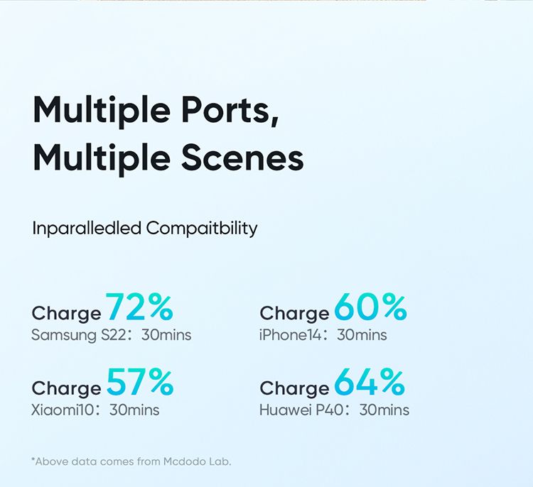 - USB-C1+USB-C2: 100W+30W ; USB-C1/USB-C2+USB-A: 100W+30W