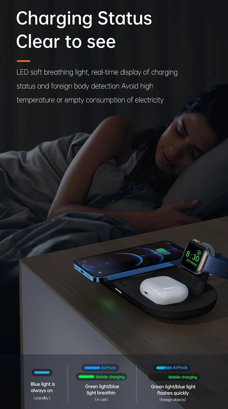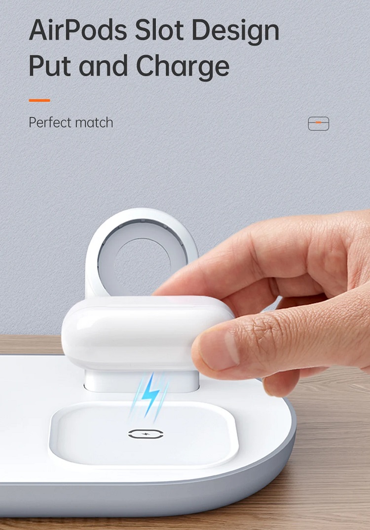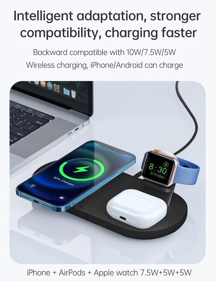 Incarcatorul Mcdodo va permite sa va incarcati fara fir smartphone-ul, ceasul inteligent si castile TWS in acelasi timp. Un suport special va va permite sa va incarcati ceasul Apple intr-o pozitie orizontala, iar suportul pentru MagSafe face procesul de incarcare pentru iPhone-uri mai eficient.