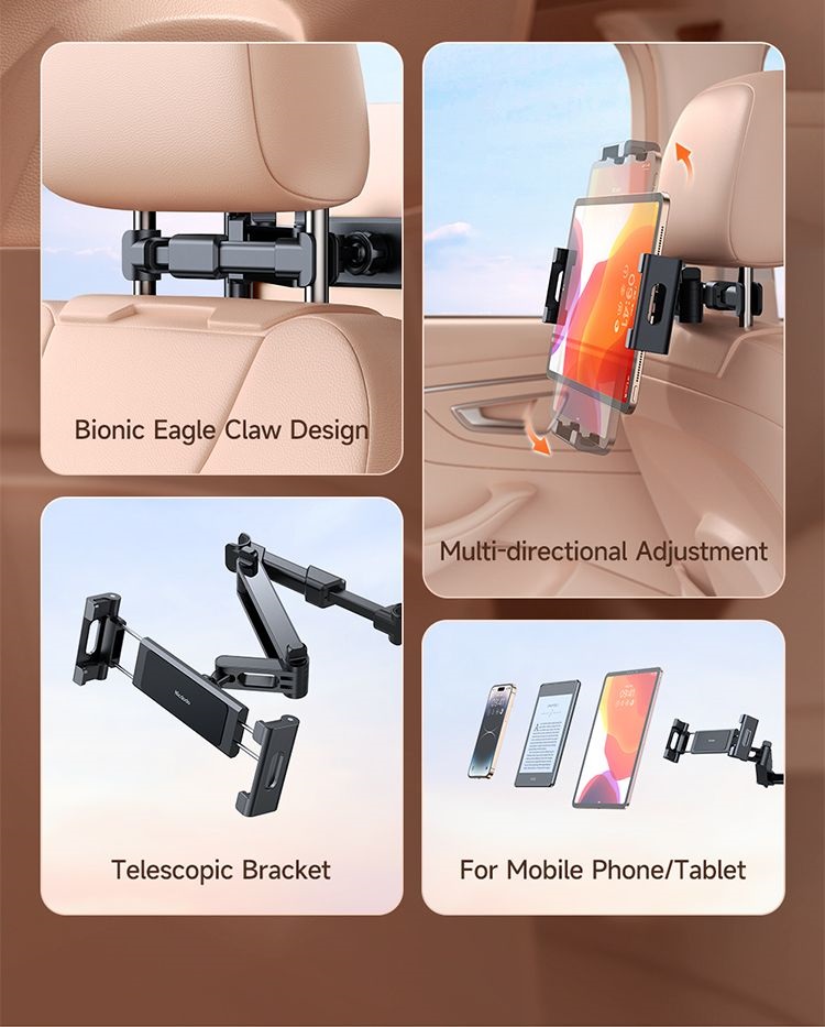 Suportul auto Mcdodo este proiectat avand in vedere mai multe utilizari, il puteti folosi cu usurinta pentru a viziona filme, a rasfoi videoclipuri sau a juca jocuri. Este un gadget ideal pentru pasagerii din spate. In plus, a fost echipat si cu orificii speciale de incarcare la ambele capete, astfel incat sa puteti reinnoi liber energia dispozitivelor dvs. in orice moment.