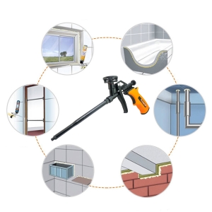 - Spuma este un dispozitiv de fixare foarte bun si element de constructie, precum si izolator termic si fonic. Si daca vorbim despre aplicarea spumei atunci ai nevoie de un pistol aplicat spuma teflonat, care este realizat din aluminiu solid si durabil, cu interior teflonat, rezistent la coroziuni.