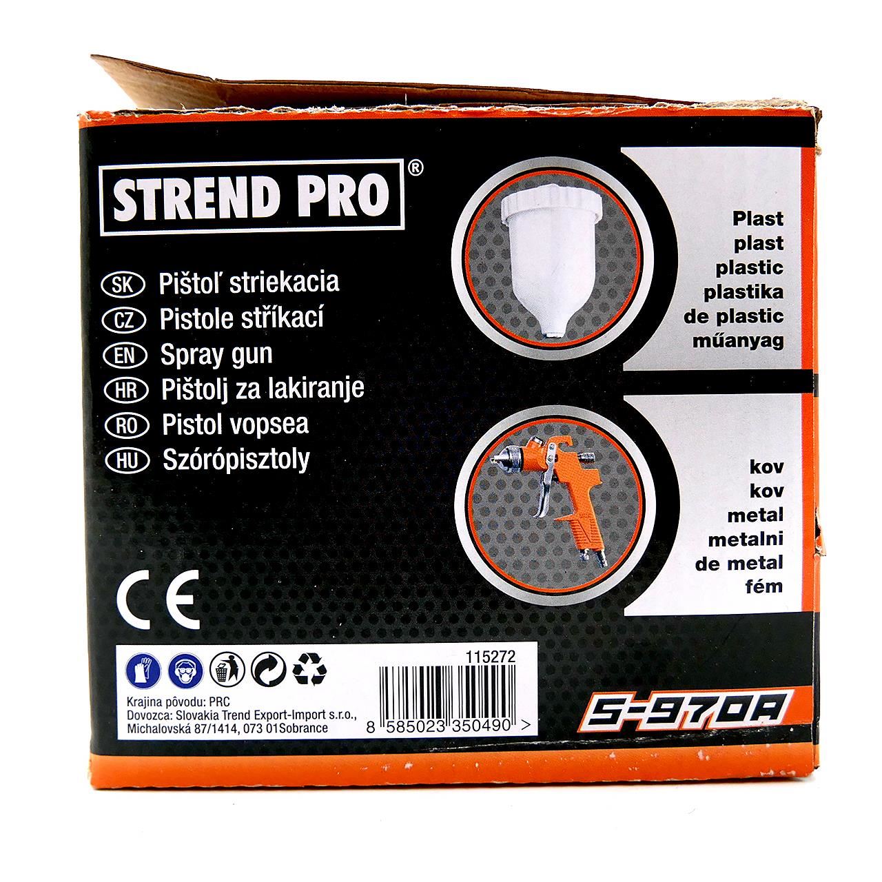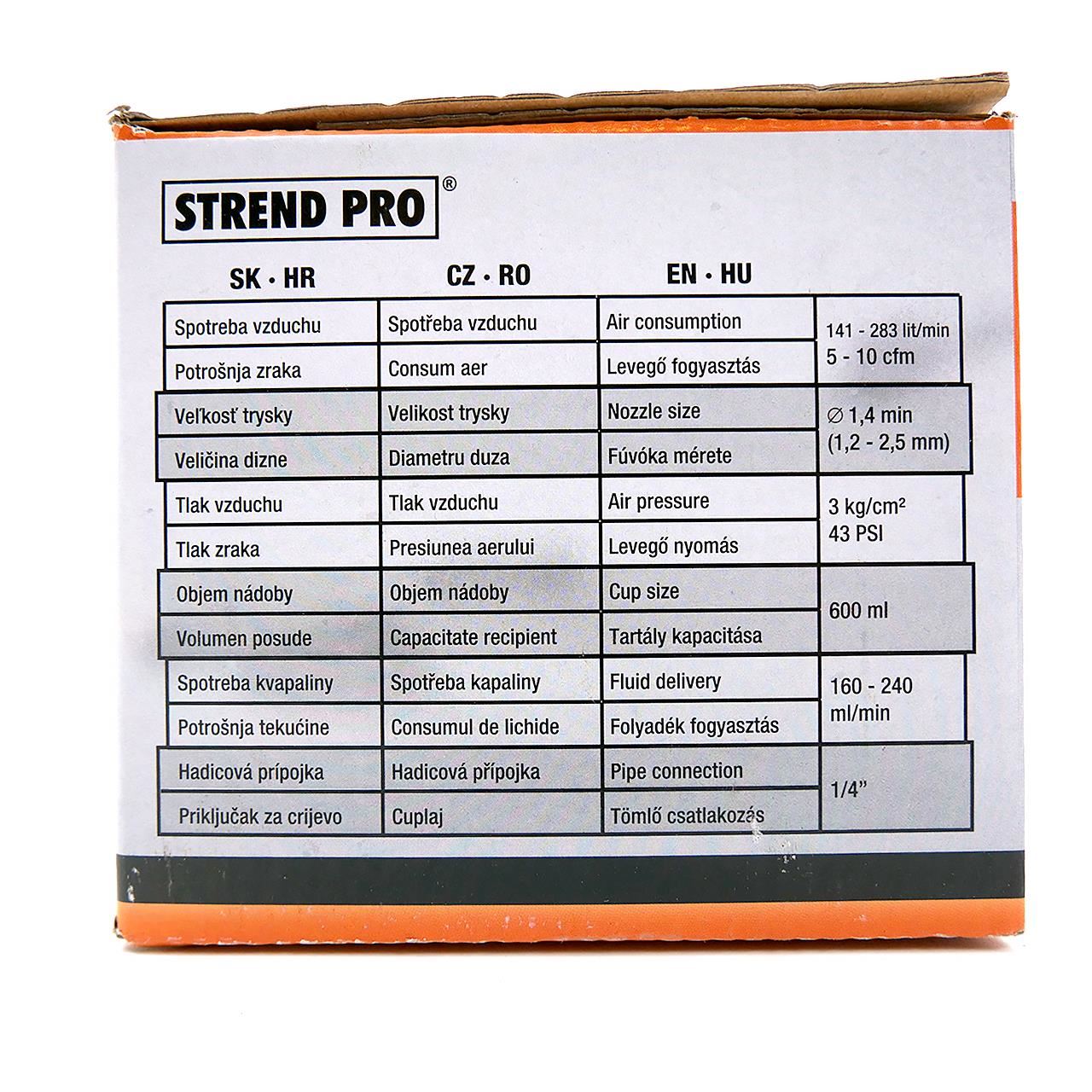 Pistol de vopsit, vas superior, plastic, pulverizator pentru compresor, 600 ml, 1.2-2 mm, Strend Pro