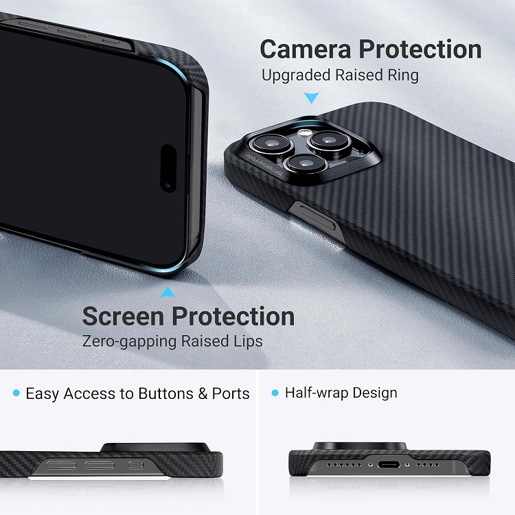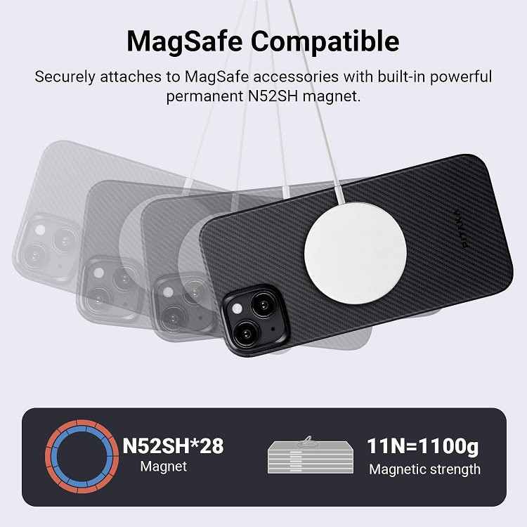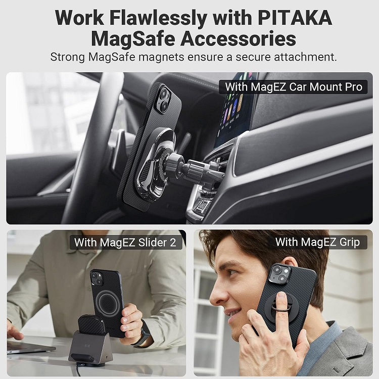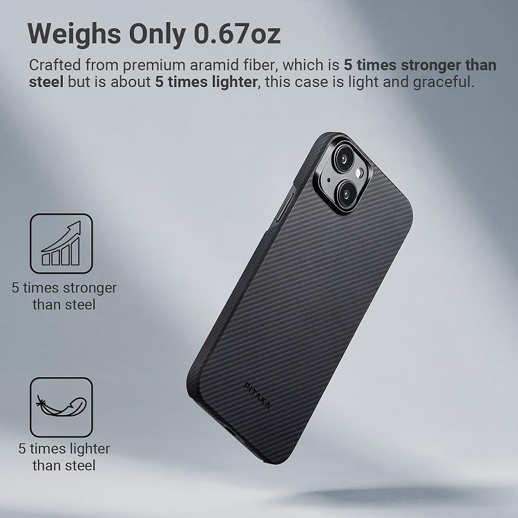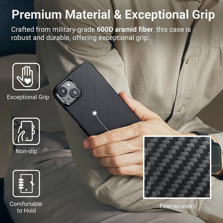 Husa MagEZ 4 Aramida 600D de la Pitaka pentru iPhone 15 Plus, este realizata din materile durabile ce protejeaza telefonul dumneavoastra impotriva uzurii cauzate de folosirea zilnica, a fost proiectata pentru o compatibilitate totala cu accesoriile MagSafe asigurand o prindere ferma si sigura.