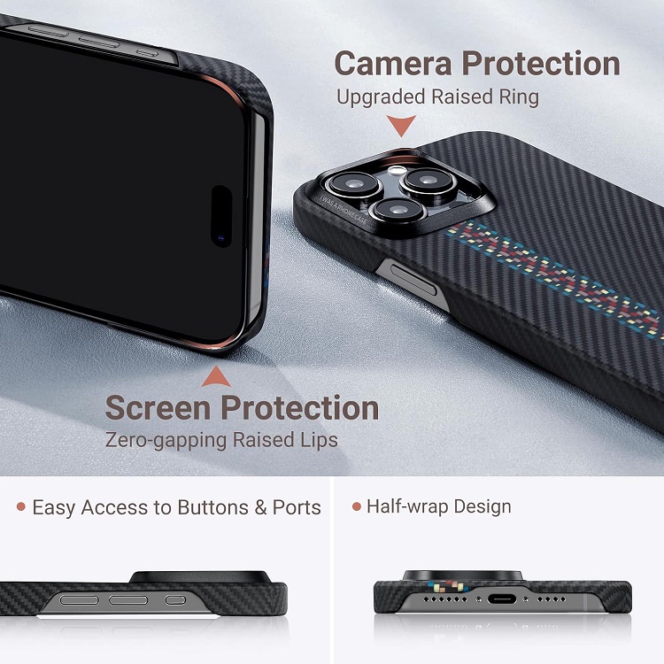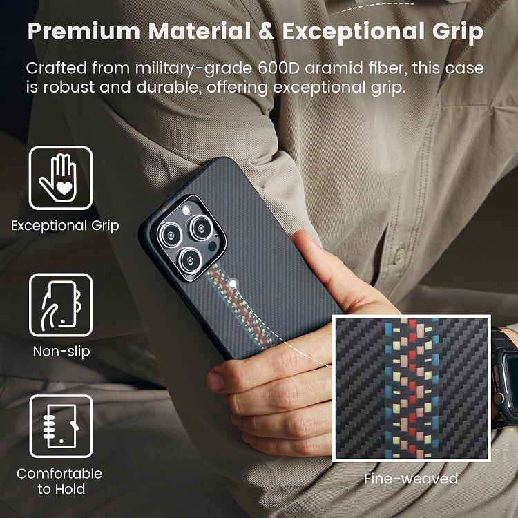 Husa MagEZ 4 Aramida 600D de la Pitaka pentru iPhone 15 Pro Max, este realizata din materile durabile ce protejeaza telefonul dumneavoastra impotriva uzurii cauzate de folosirea zilnica, a fost proiectata pentru o compatibilitate totala cu accesoriile MagSafe asigurand o prindere ferma si sigura.