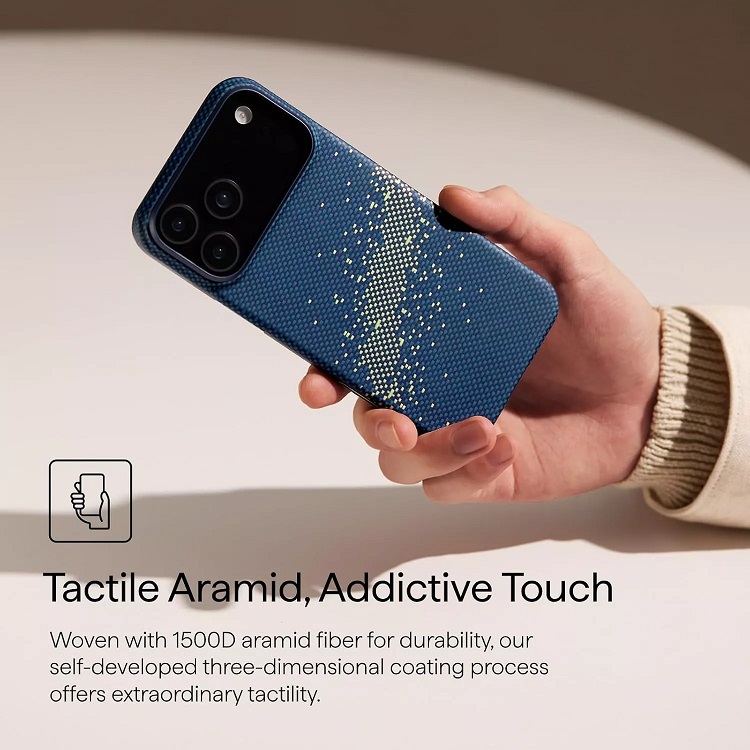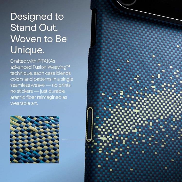Husa Pitaka Starpeak MagEZ 7 Ultra-Slim Aramida Magsafe pentru iPhone 17 Pro fabricata din fibra de aramida utilizata in industria aerospatiala, tesatura emblematica Weaving+ Momen, incredibila de subtire si usoara pentru o potrivire perfecta.