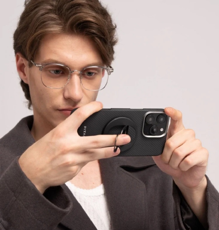 Suportul Inel Magnetic pentru telefon MagEZ Grip 3 de la Pitaka, fabricat din fibra de aramida si din aliaj de zinc, designul cu inel dublu ofera un suport puternic, mentinand telefonul stabil atat in modul peisaj cat si in modul portret si eliberandu-ti mainile.