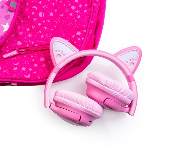 Castile pentru copii, Wireless, Bobo Cat Ears de la PowerLocus, sunt casti wireless concepute cu gandul la copii. Acestea ofera trei niveluri de limitare a volumului pentru a proteja auzul celor mici de deteriorari. In acelasi timp, acestea ofera o calitate excelenta a sunetului si suporta conectivitate Bluetooth 5.3 rapida si stabila. Acestea au avantajul suplimentar al unui decor in forma de urechi de pisica cu iluminare de fundal colorata, care cu siguranta va atrage multi mici iubitori de muzica.