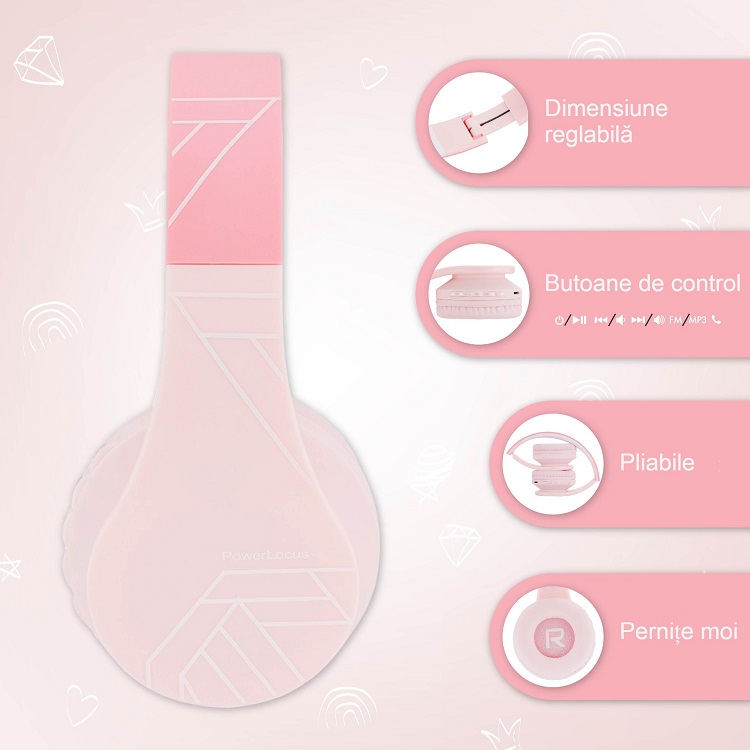 PowerLocus Casti pentru copii, Wireless, P1 Pink