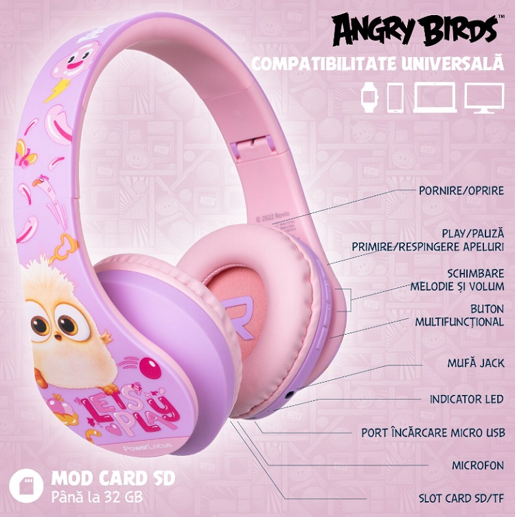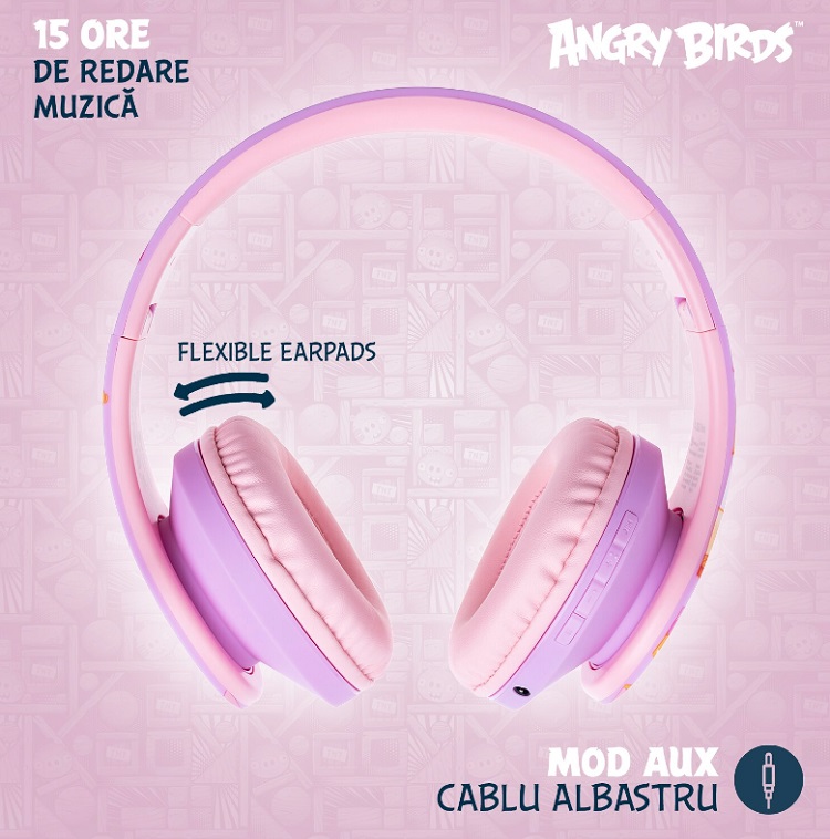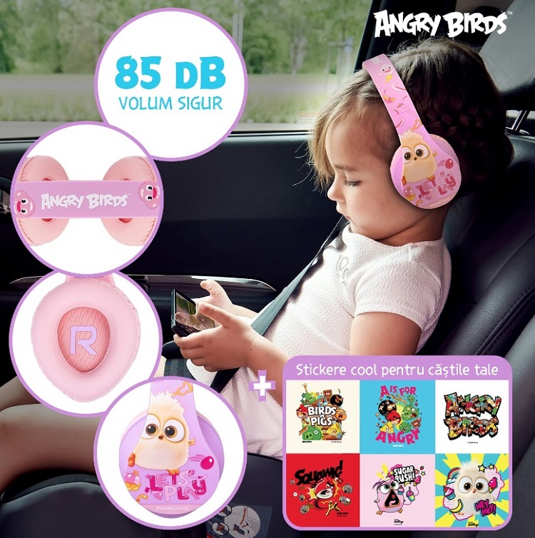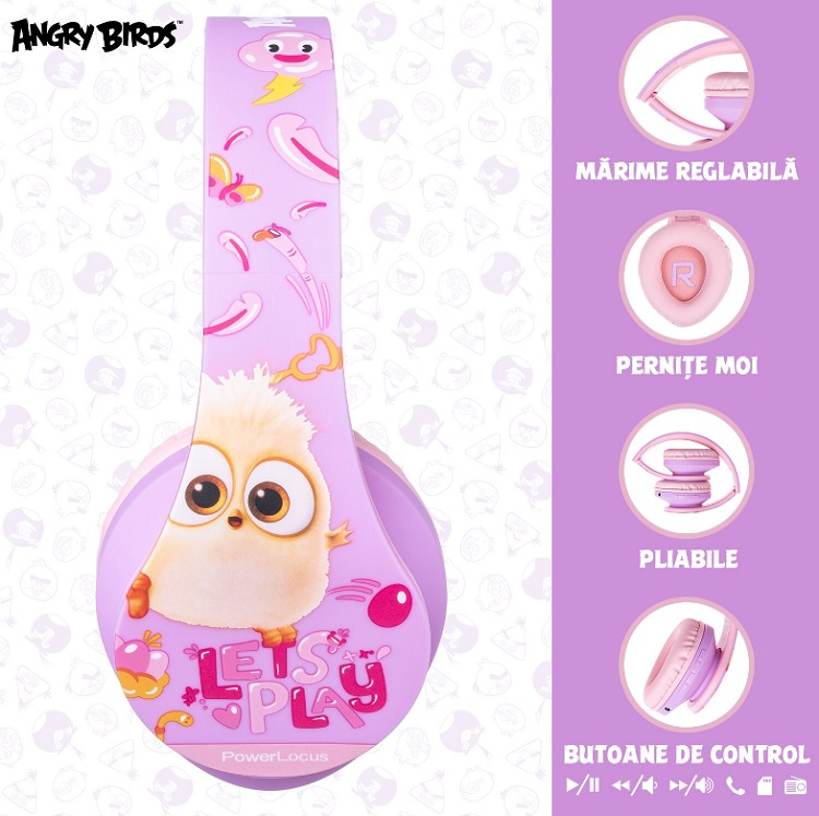 PowerLocus Casti pentru copii, Wireless, P2 Angry Birds Pink