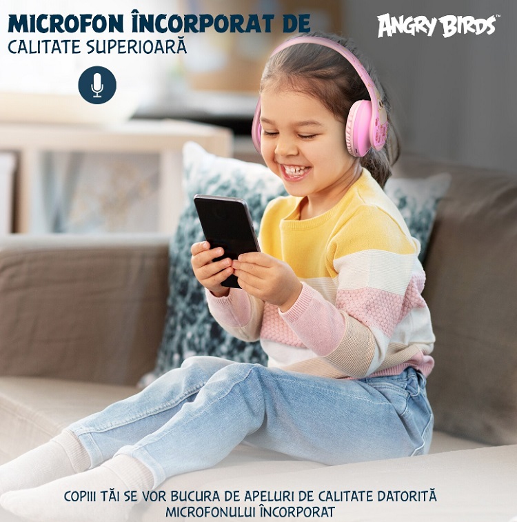Castile pentru copii cu microfon sunt o alegere ideala pentru cursurile si lectiile online. Sunt compatibile cu iOS, Android, Windows, Mac si altele. P2 Kids Angry Birds au o conexiune Bluetooth stabila si neintrerupta cu o raza de actiune de pana la 10 m.