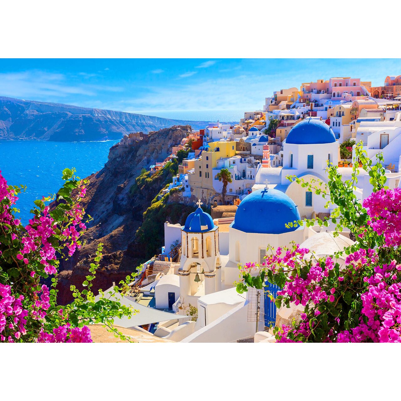Puzzle 1000 piese Enjoy - Santorini View with Flowers, Greece