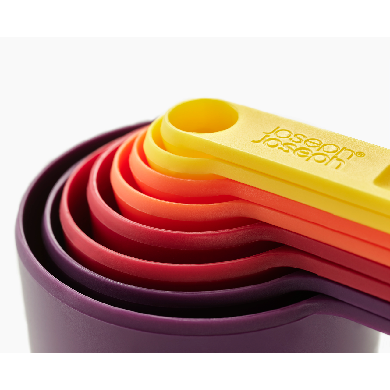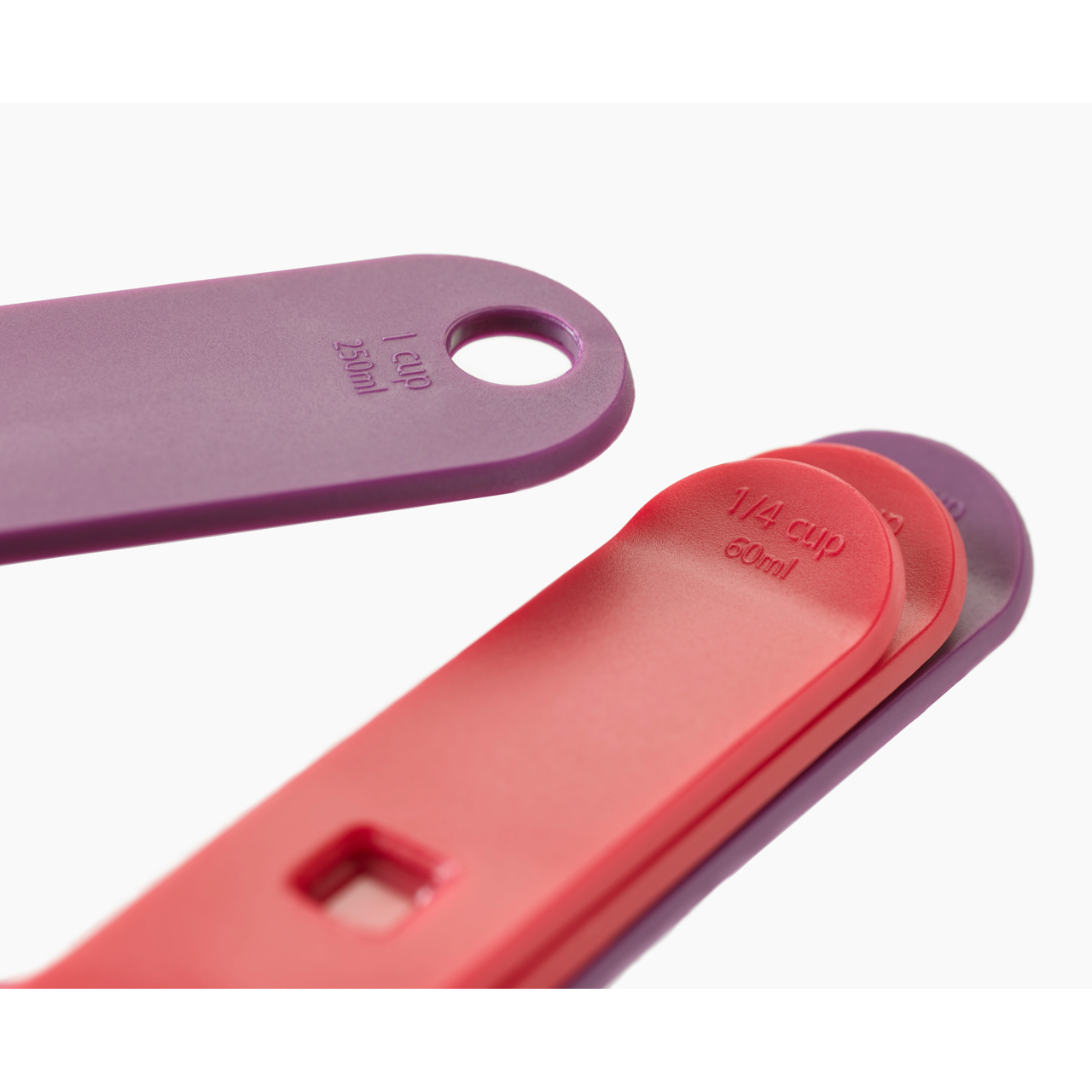 Nest™ Measure adună împreună opt cupe de măsurare într-un singur design compact, astfel încât să puteți găti și coace cu mai multă eficiență. Cuplele de măsurare variază în dimensiune de la ¼ linguriță (1,25 ml) până la 1 cupă (250 ml) și se îmbină cu ușurință pentru a ocupa un spațiu minim în sertarul sau dulapul dvs.