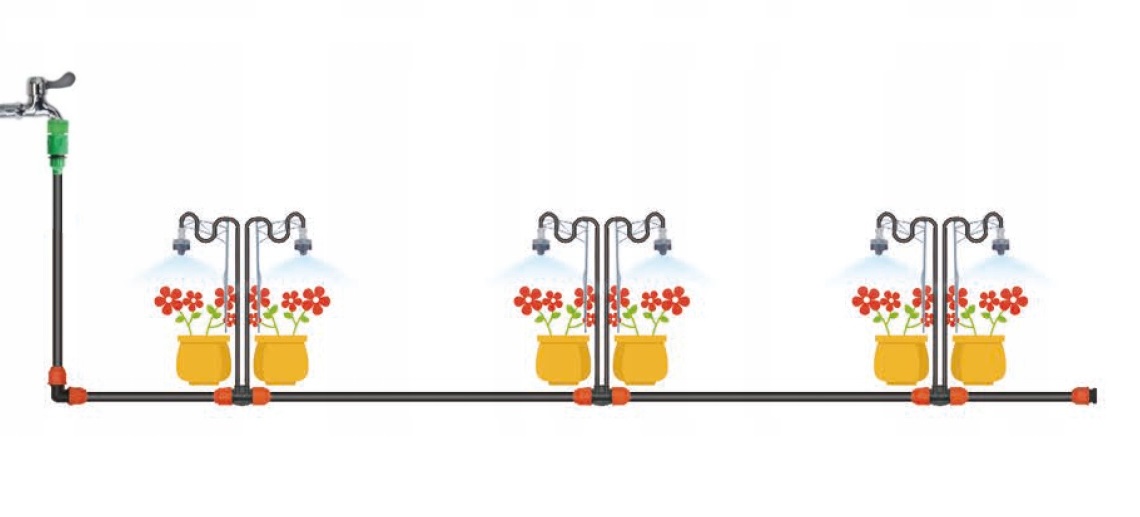 Sistemul este perfect pentru udarea culturilor casnice. Principalul avantaj al utilizarii unui sistem de irigare a plantelor este stropirea constanta si uniforma.