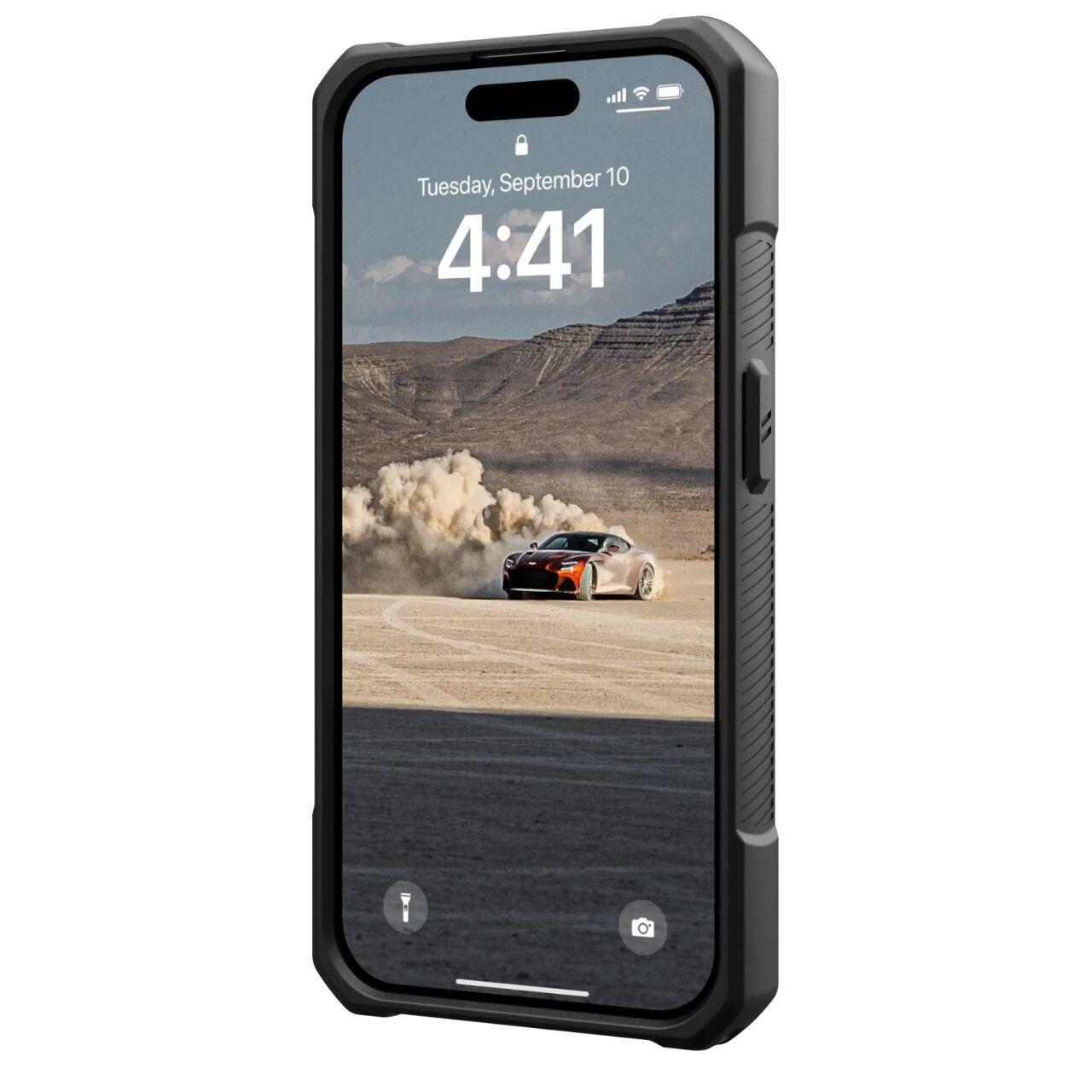 Husa Monarch Series de la UAG pentru iPhone 15 Pro, combina 5 tipuri de materiale intr-o protectie premium ce rezista la cazaturi accidentale si zgarieturi. Marginile si interiorul sunt realizate din cauciuc flexibil, iar colturile sunt evidentiate si intarite pentru a prelua socurile cu succes.