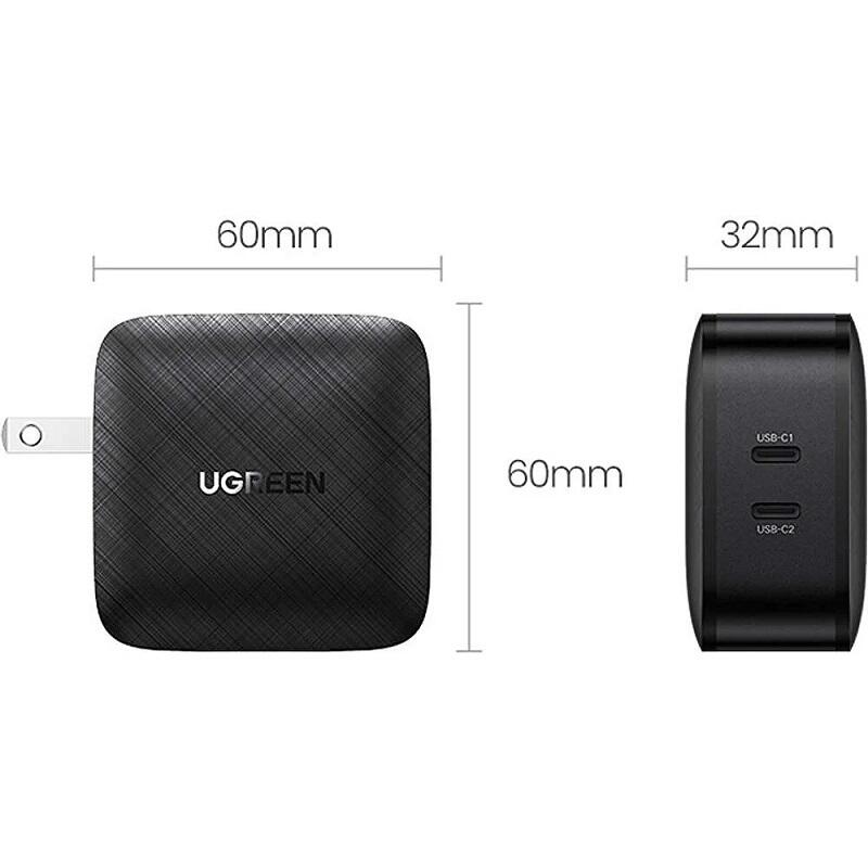 Ugreen Incarcator Priza Quick Charger 65W, 2 x USB Type-C 5V/3A, Negru
