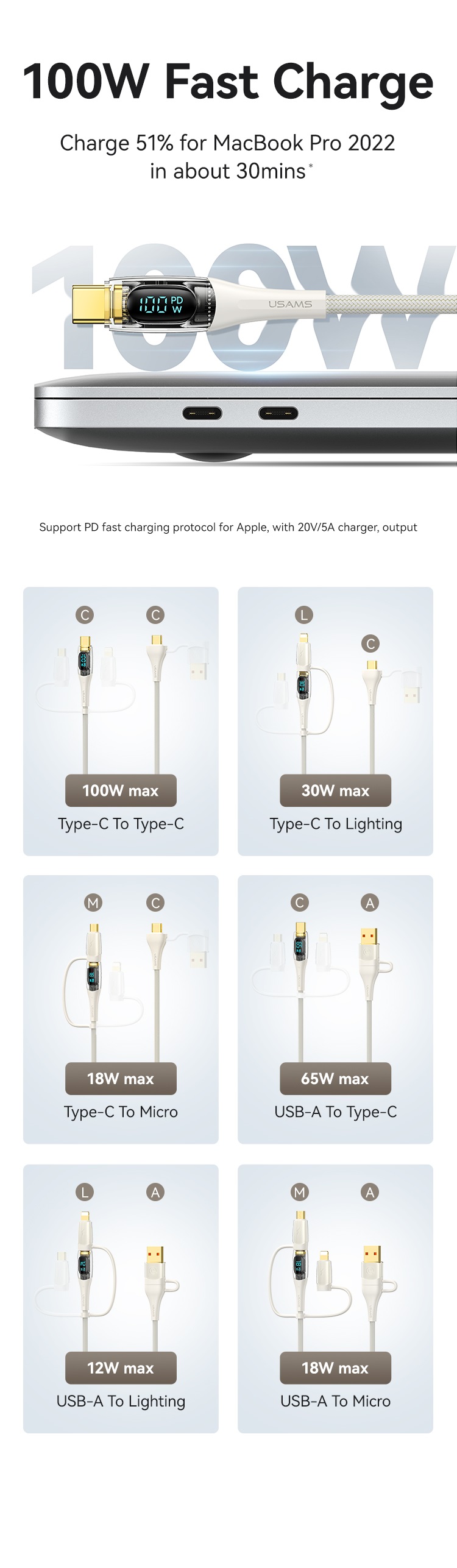 - Type-C-Lightning:30W max
