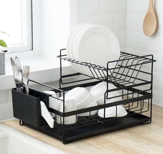 - ASPECTUL LOFT - un aspect modern, elegant de mansarda va face din uscator un decor al bucatariei tale! Setul include un scurgator de tacamuri detasabil, doar atarna-l pe lateralul uscatorului. Poate fi amplasat oriunde pe scurgator. Baza de scurgere a tacamurilor si tava principala pentru apa sunt realizate din plastic negru rezistent. In plus, culoarea neagra universala se va potrivi in orice interior.
