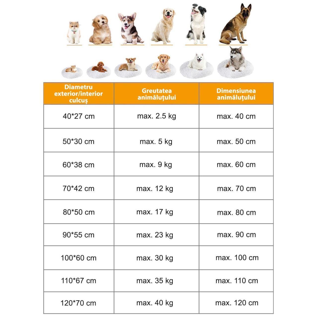 Available size options - Consider the table below to find the right bed for your pet. Consider both the outer and inner diameter.