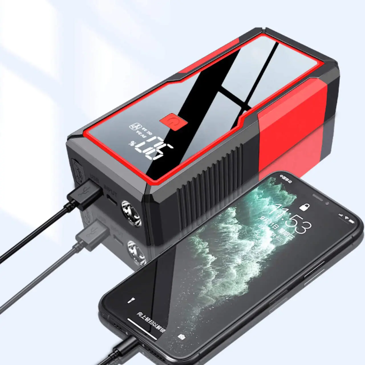 Arrancador de coche portátil multifuncional, 12V, 2000A, 26000 mAh, 44,4 Wh, función batería externa, linterna LED, puerto EC-5, puerto USB, puerto tipo C