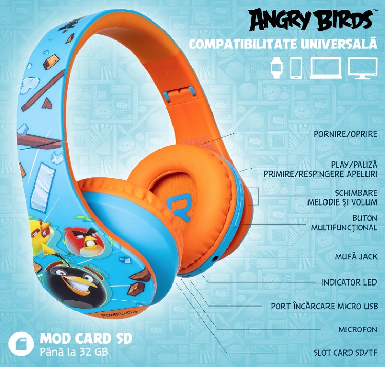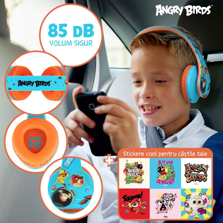 Auriculares PowerLocus para niños, inalámbricos, P2 Angry Birds Naranja