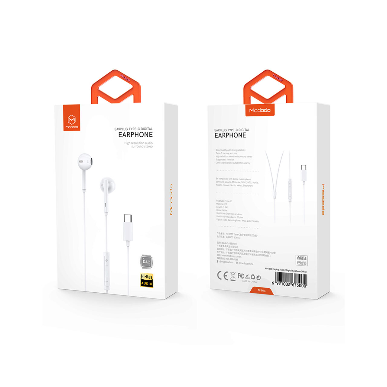 Auriculares Mcdodo Achievement Series Type-C Blanco