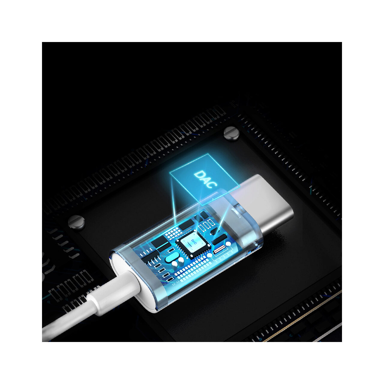 Sonido de alta resolución del mejor chip - los auriculares están equipados con un chip decodificador de audio DAC digital independiente, que puede admitir formatos de audio de alta velocidad, como 24 bits/96 kHz, y tiene estándares de audio de alta resolución.
