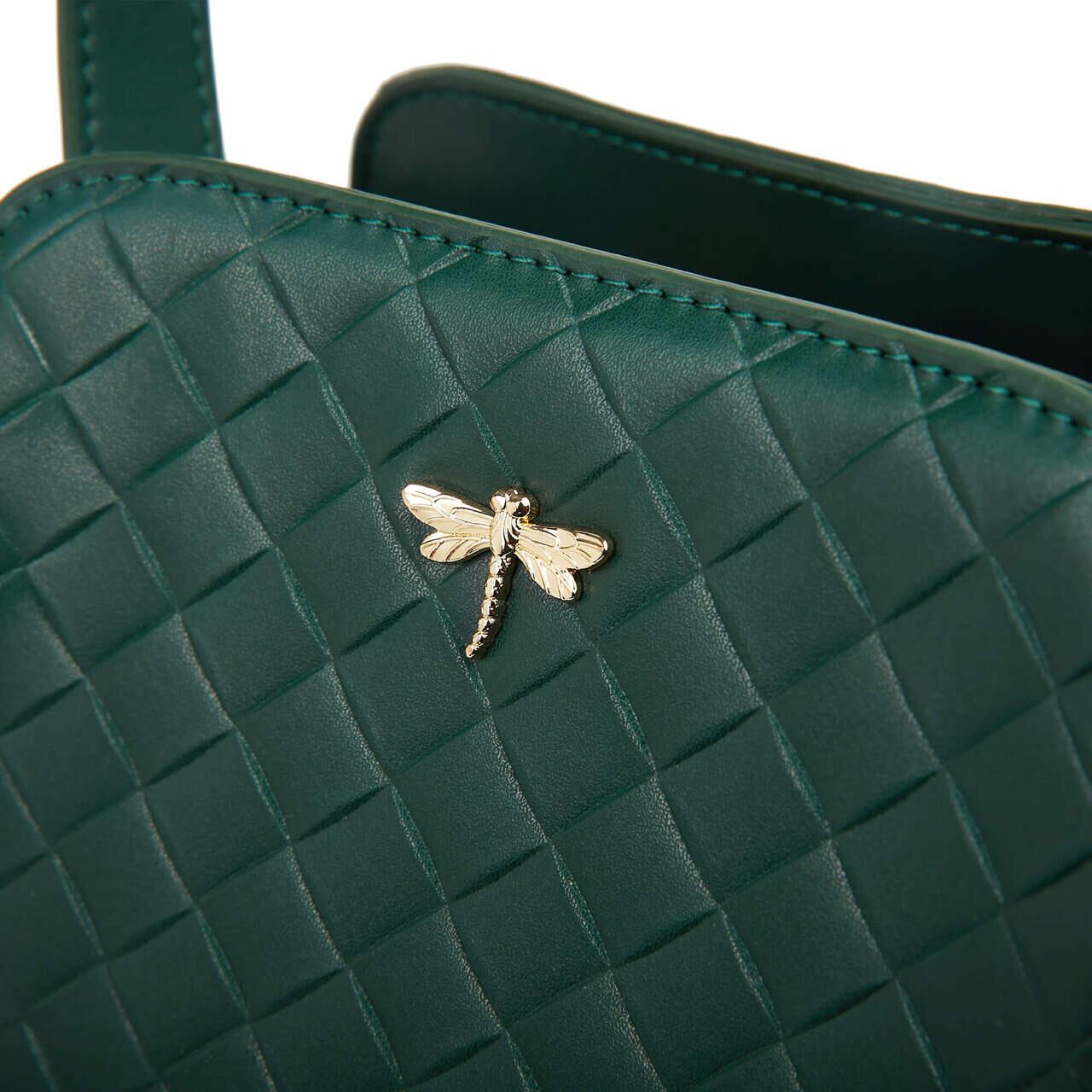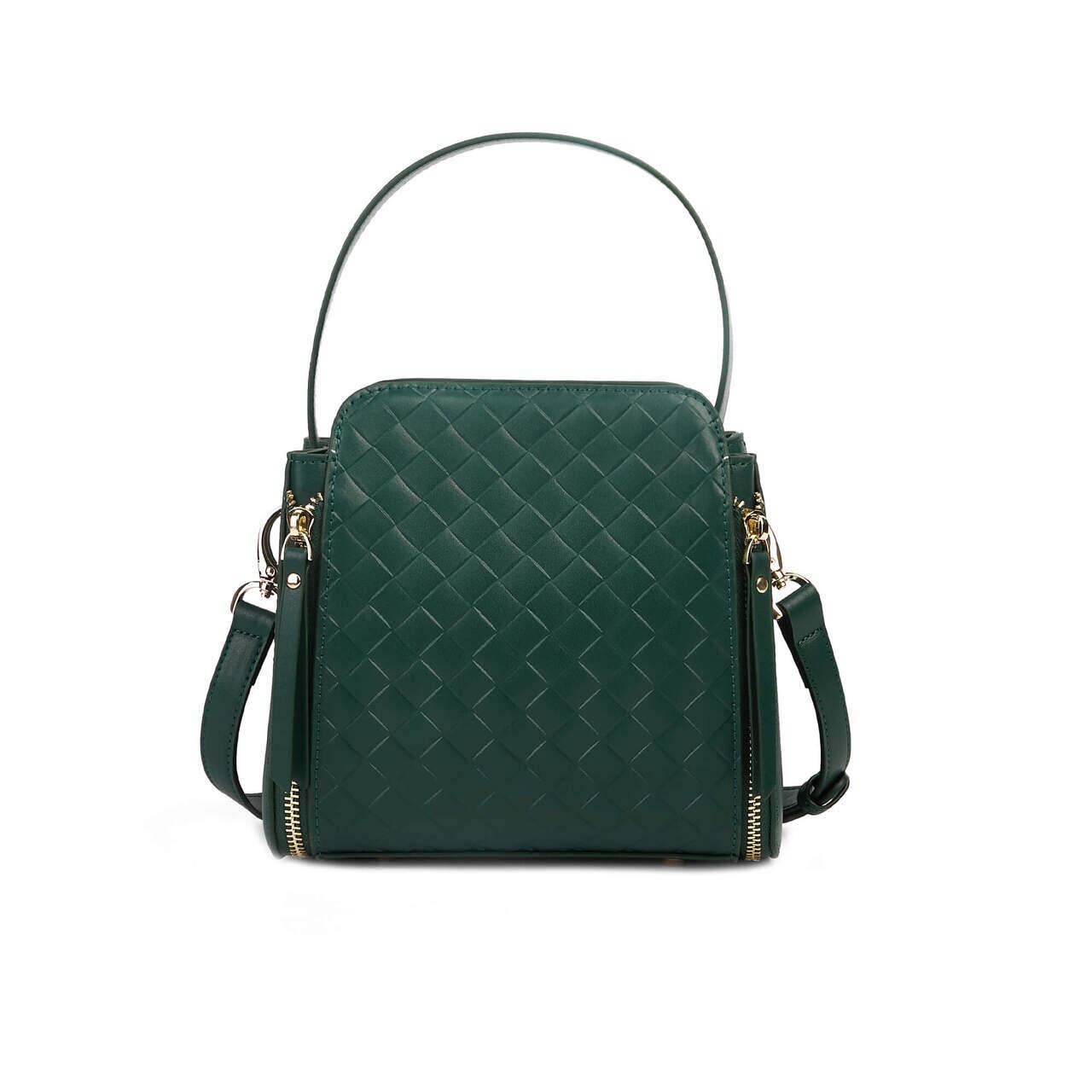 El modelo en relieve y el detalle metálico dorado completan felizmente la personalidad del bolso Luna.