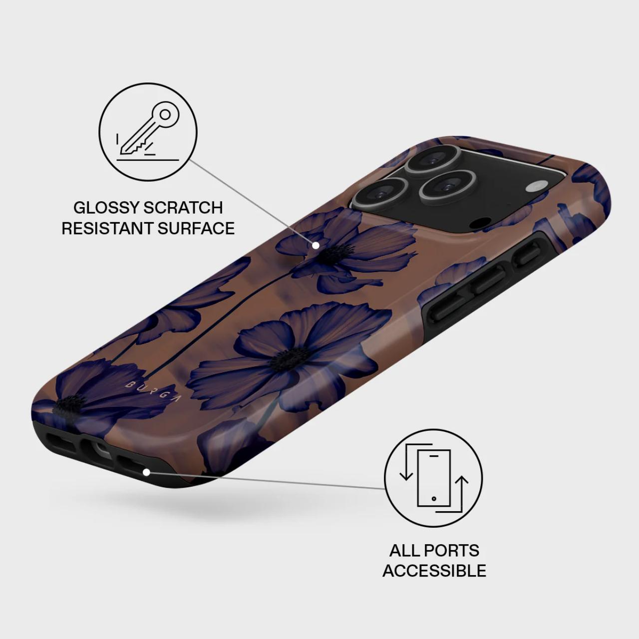 La funda Dual Layer Magsafe Velvet Night para iPhone 17 Pro de Burga tiene un patrón único y colorido, y el interior de silicona protegerá el dispositivo durante las caídas, mientras que los marcos elevados de 2 mm ofrecen protección para la pantalla y la cámara.