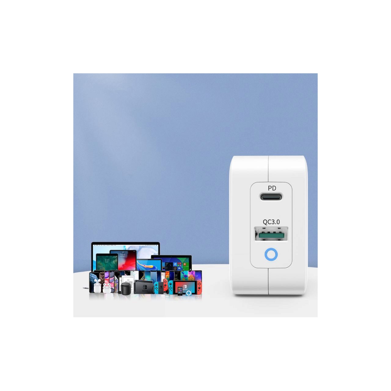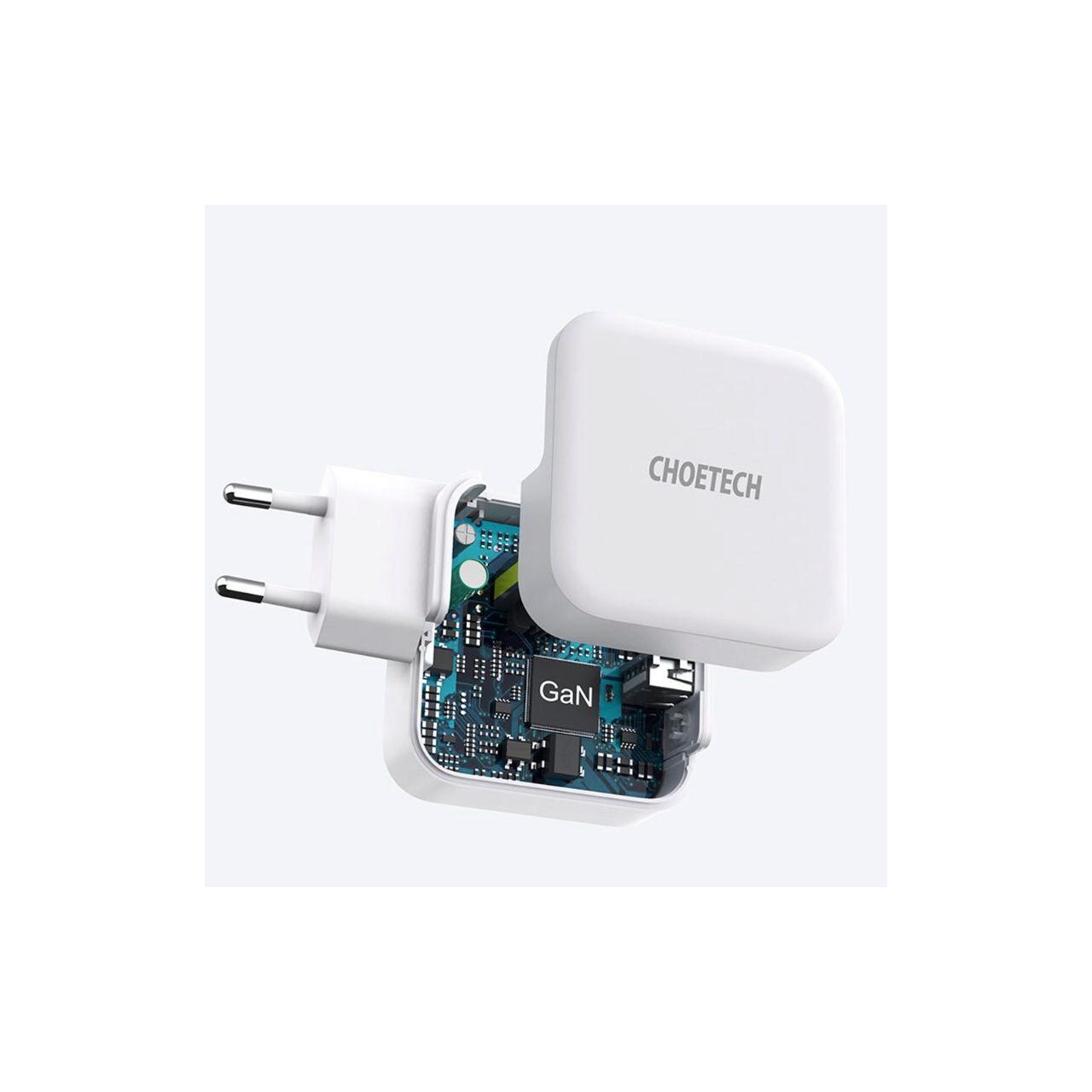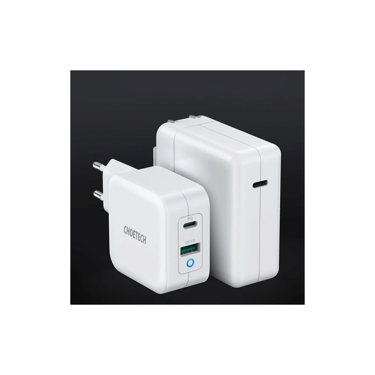 Choetech Cargador Red Carga Rápida Dual USB-A/USB-C PD 65W EU, Blanco