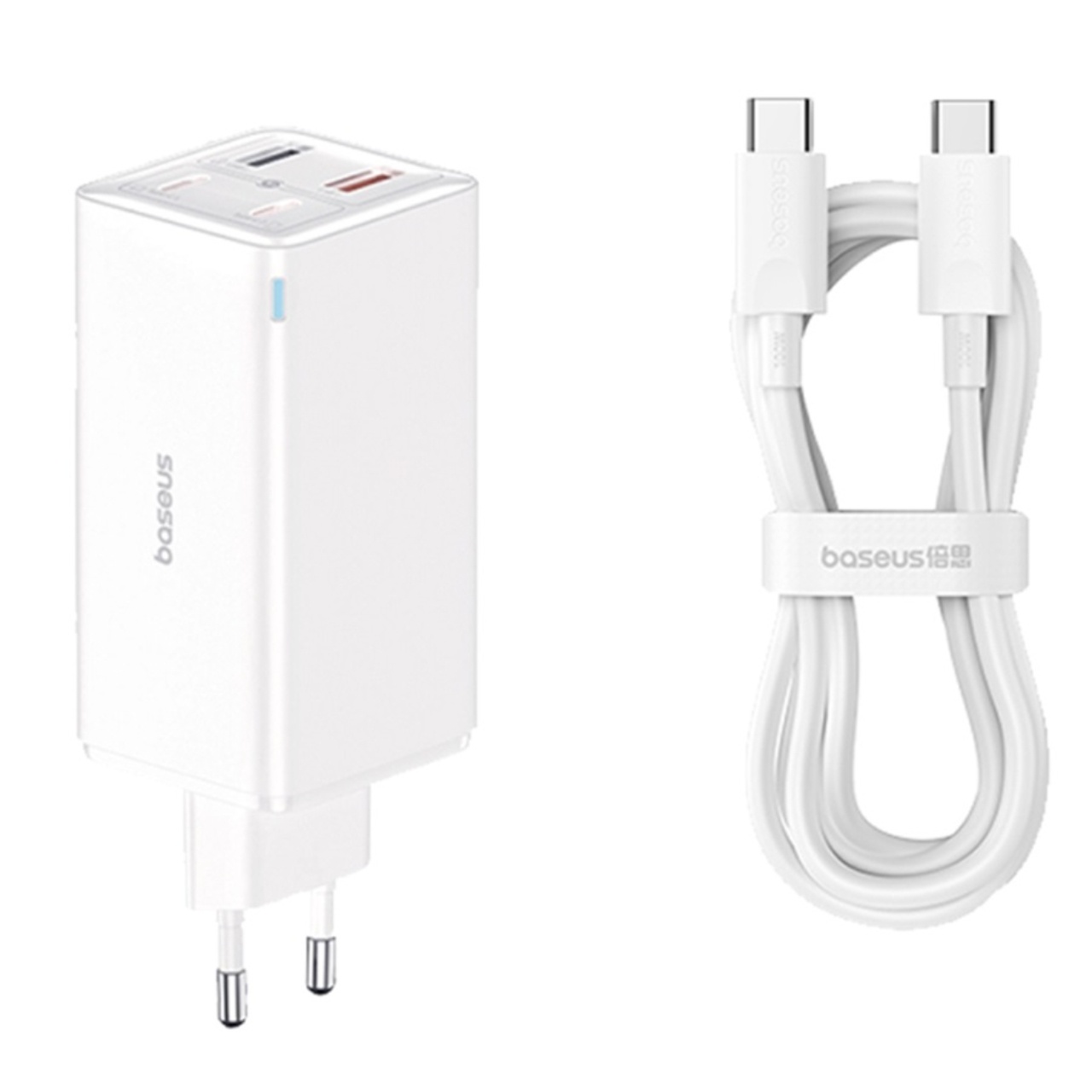 Baseus Cargador de Red GaN6 Pro de 100 W, 2 USB, 2 Tipo-C, 100 W, Cargador Rápido, Cable Tipo-C a Tipo-C, 100 W, 20 V, 5 A, 1 m, Blanco
