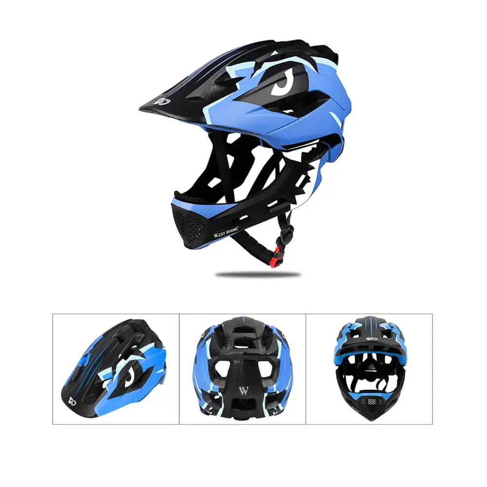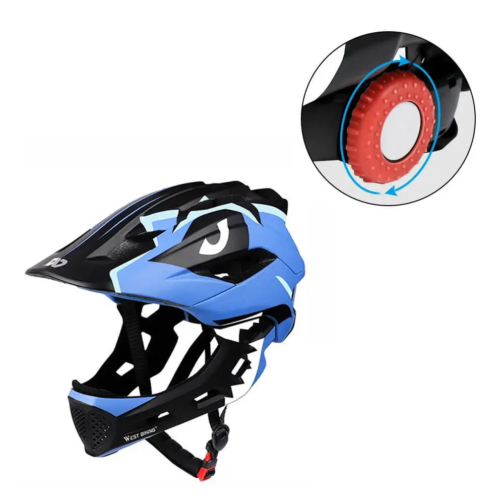 Casco infantil, integral, para bicicleta, patinete, monopatín, patines, sistema de ajuste, talla S (52-56 cm), EPS+PC, West Biking, azul