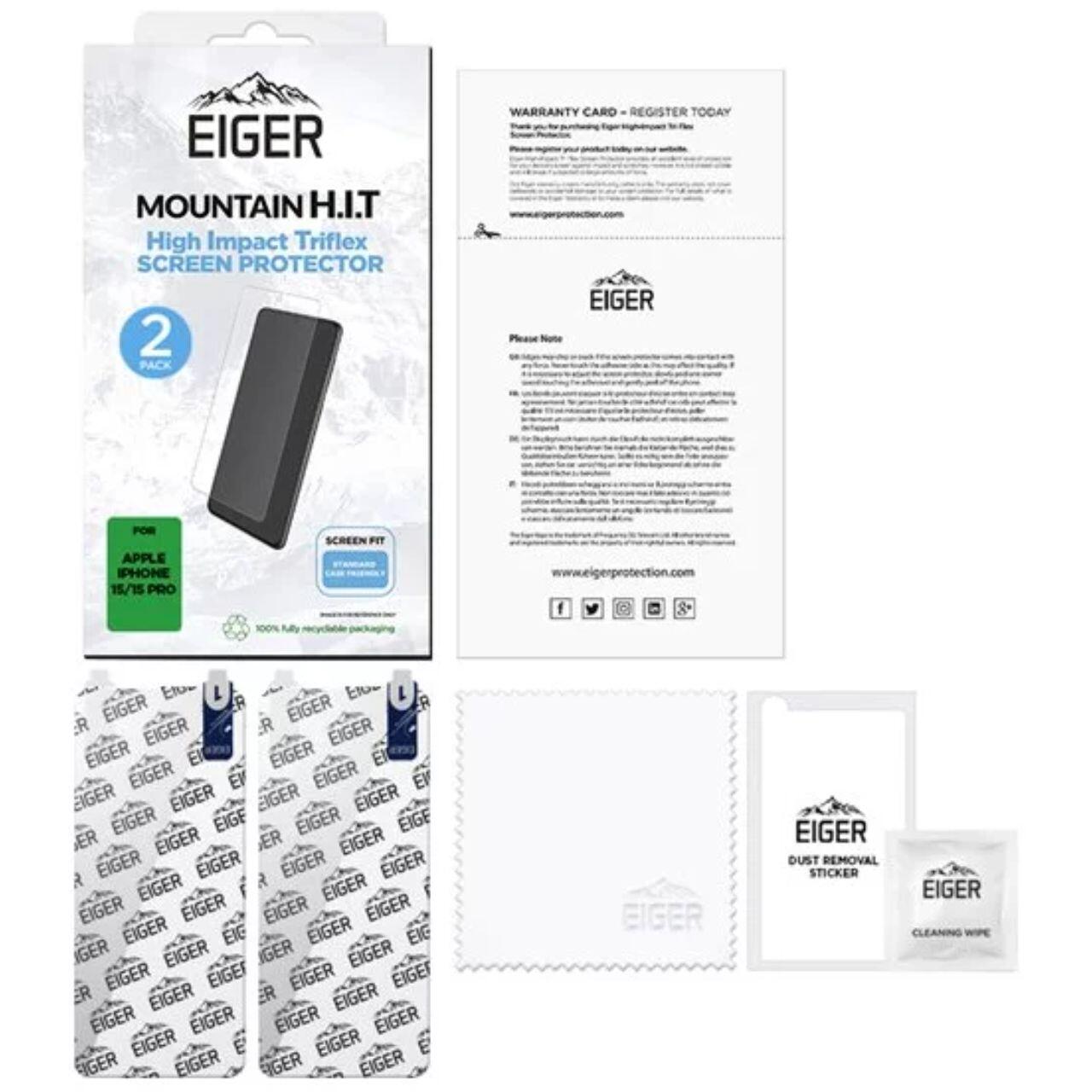 Eiger Folie Mountain HIT iPhone 15 / 15 Pro, paquete de 2, transparente