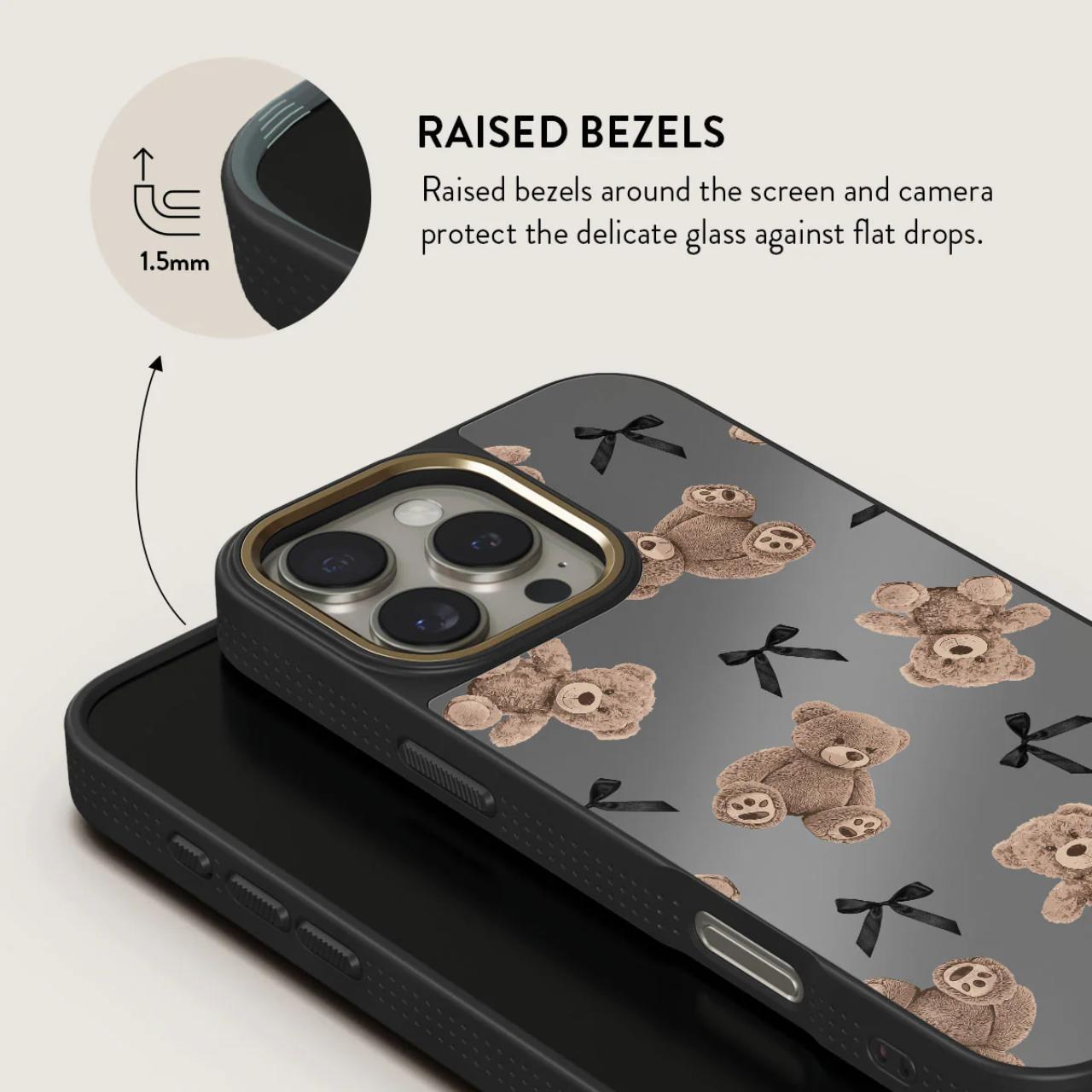BFF: un diseño que combina inocencia y sofisticación. Con ositos de peluche y un elegante fondo gris, BFF es un regreso a la reconfortante nostalgia de la juventud, actualizada con un toque de glamour moderno. Este diseño hará que tú y tu funda para iPhone 16 Pro seáis compañeros inseparables, como mejores amigos.