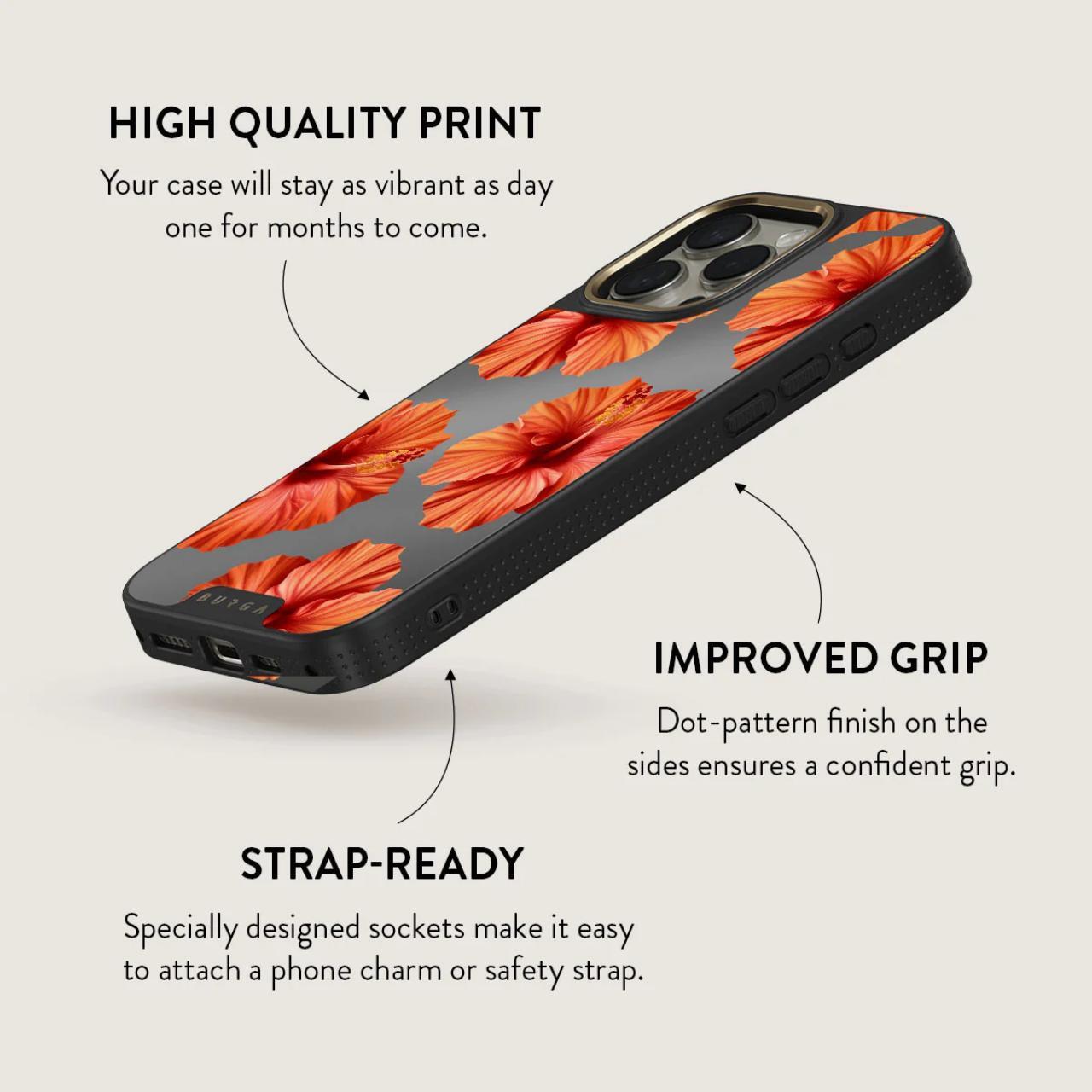 Hermoso: con llamativas y hermosas flores de hibisco que resaltan sobre el fondo cremoso, este diseño de funda para iPhone 16 Pro es perfecto para quienes sueñan con una belleza floral vibrante y aventuras exóticas.