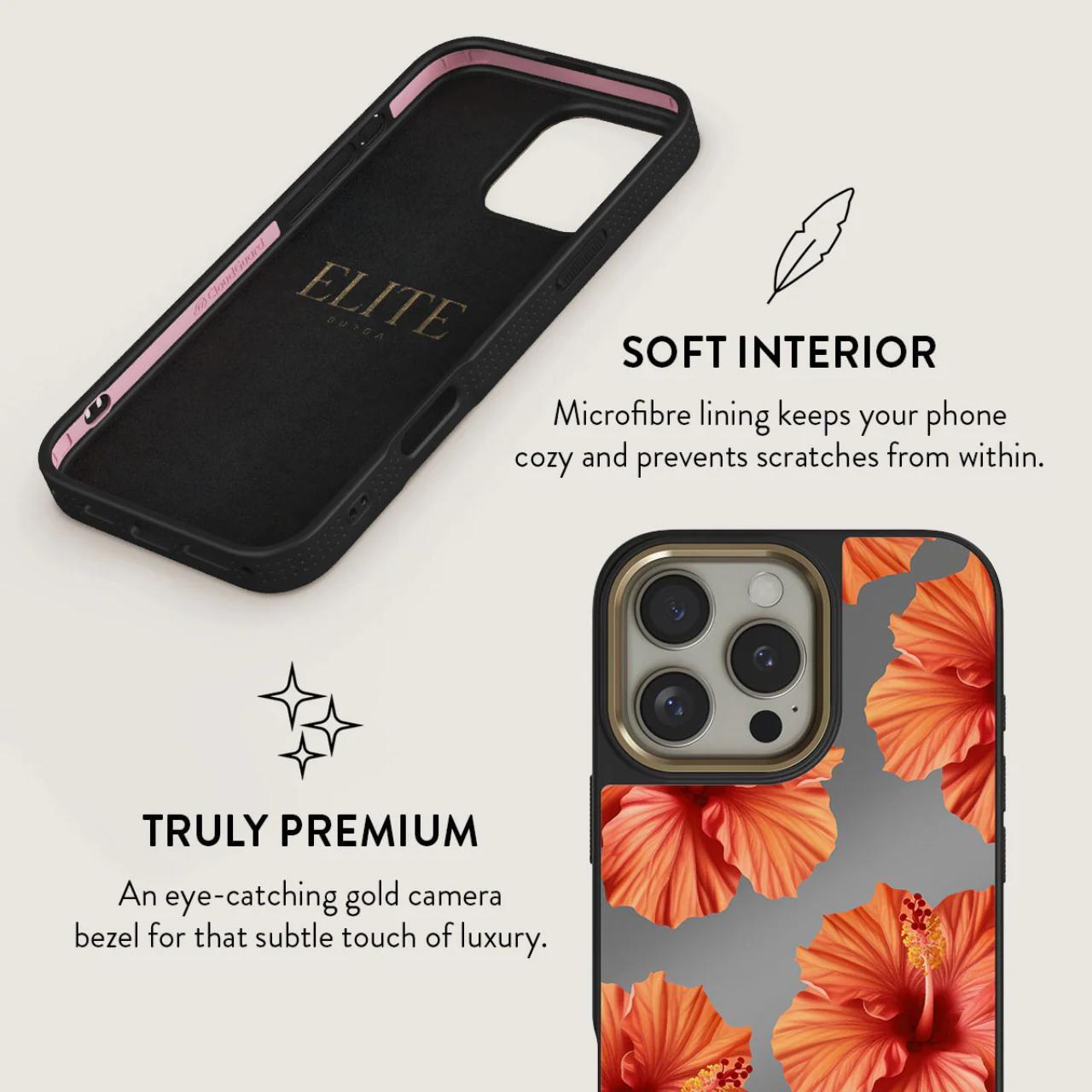 Las fundas Elite Mirror se ajustan perfectamente sin ser voluminosas, permitiendo un fácil acceso a los puertos y protección adicional para la cámara y la pantalla con biseles elevados. Aportan un toque reflectante sin sacrificar la funcionalidad.