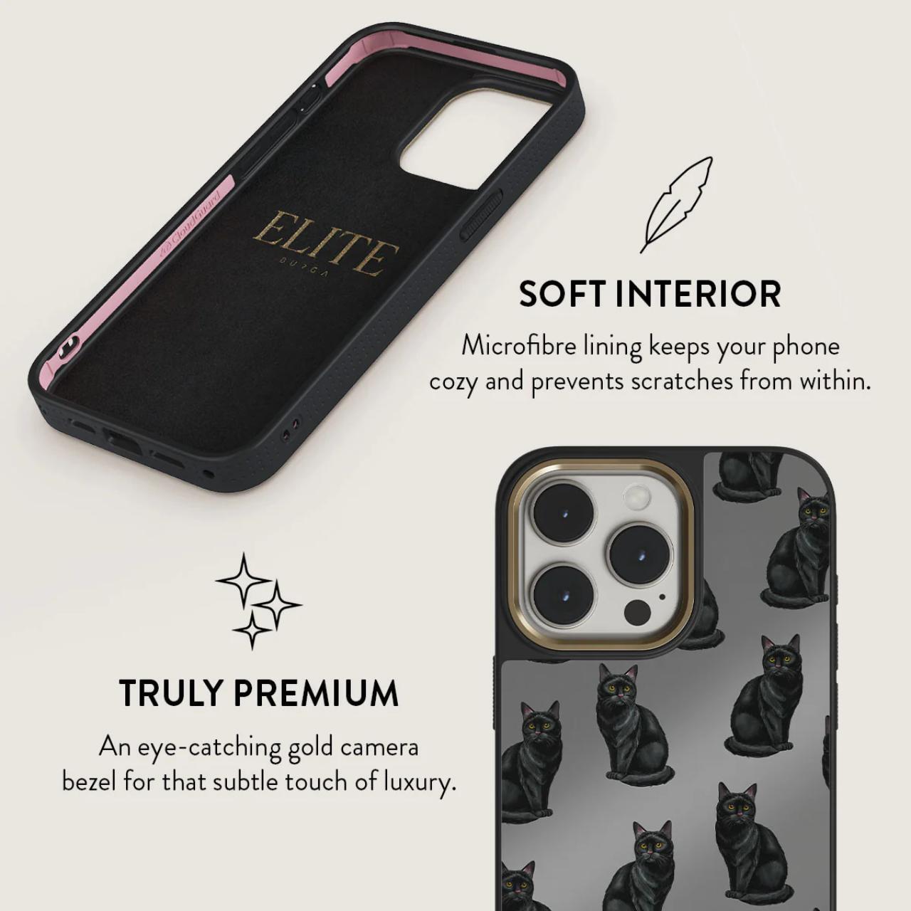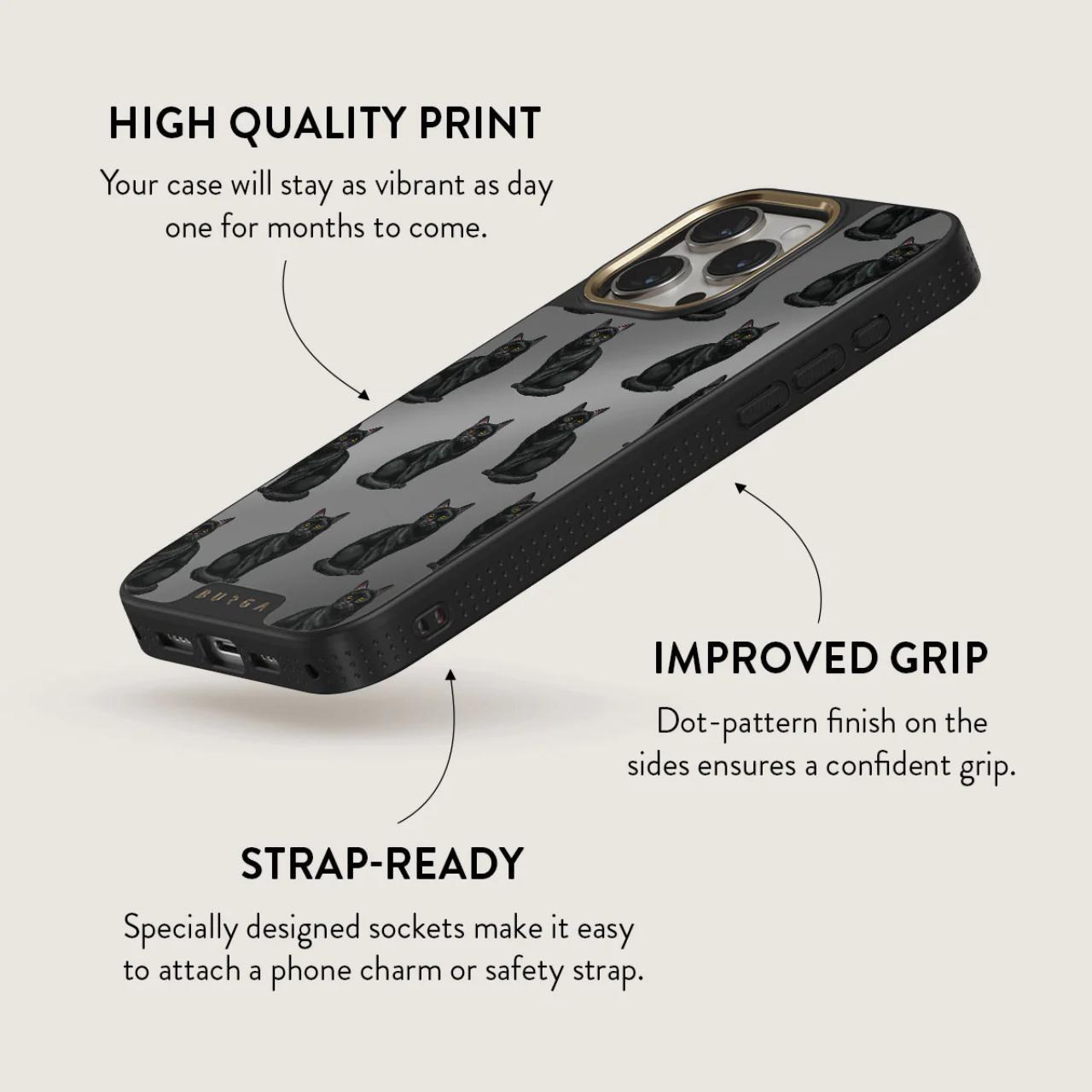 Salem: se dice que los gatos negros traen mala suerte, pero con el diseño de este iPhone 15 Pro Max, la suerte acompaña a estos pequeños guardianes. Estos gatos no son solo símbolos; son tus protectores en el misterioso mundo del estilo. Supersticioso o no, te apoya.