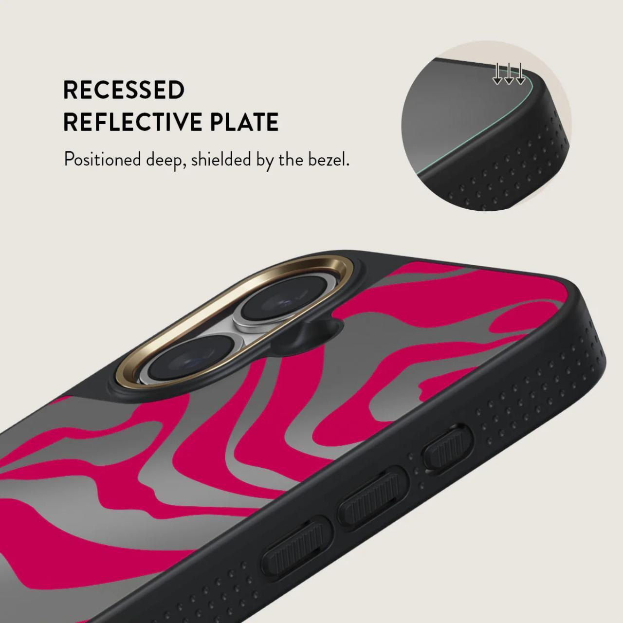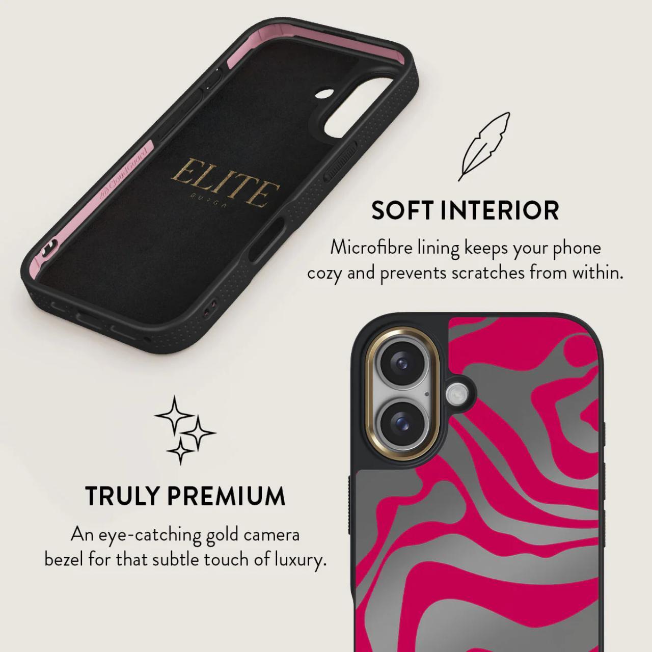 Funda Burga Elite Mirror Magsafe Gold Siren para iPhone 16 de Burga, diseñada para absorber impactos y ofrecer protección, cuenta con la última tecnología CloudGuard y un elegante acabado efecto espejo. El interior de microfibra mantiene el teléfono cómodo y evita rayones.