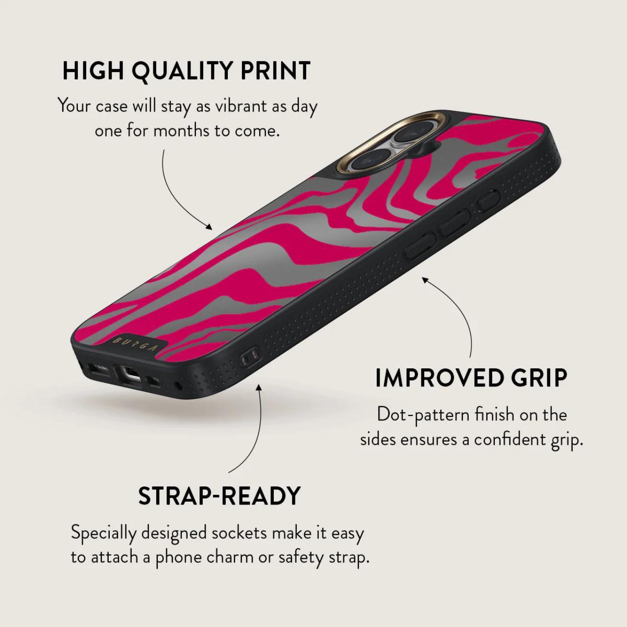 Siren: un diseño brillante y audaz para el iPhone 16, ya que el patrón de cebra se combina con el rosa brillante y crea un dúo que realmente merece un desfile.