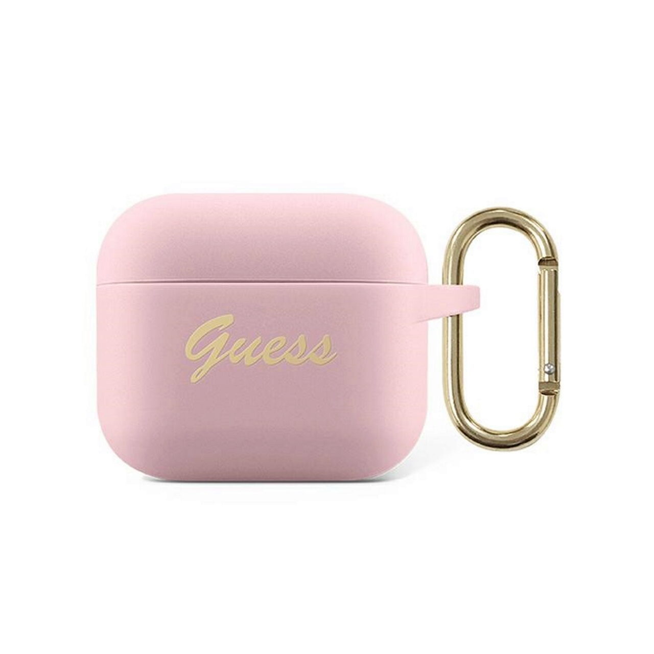 Guess Funda de silicona Vintage Script Airpods 3 Rosa