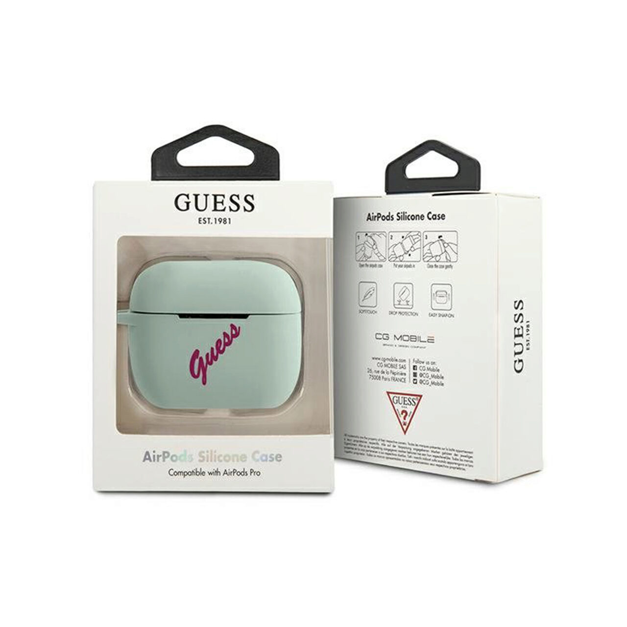 Guess Funda Silicona Vintage Airpods Pro será tu aliado perfecto, sin importar el circunstancias donde estarás! El material del que están hechos es silicona de alta calidad, ¡cool y a la moda! El recorte dedicado para el conector del cargador le permite cargar los auriculares en el estuche original, sin tener que quitarlo.