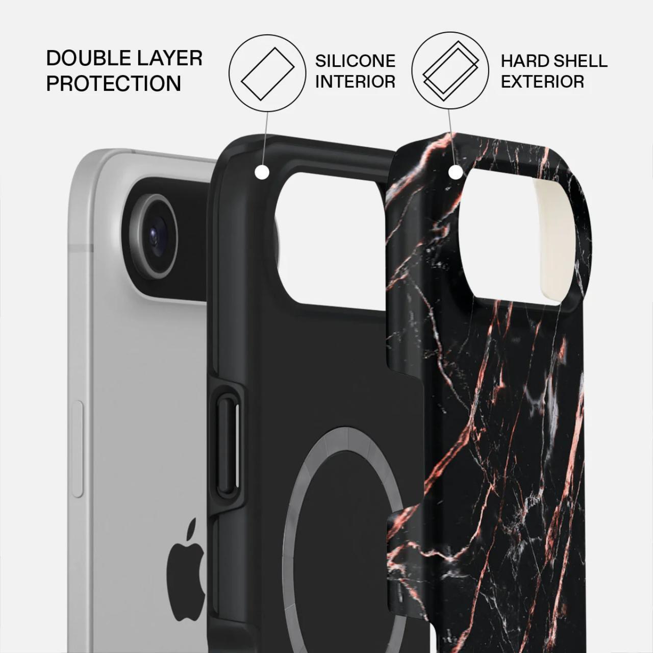 Funda Burga de doble capa Magsafe con diseño de mármol en oro rosa para iPhone Air