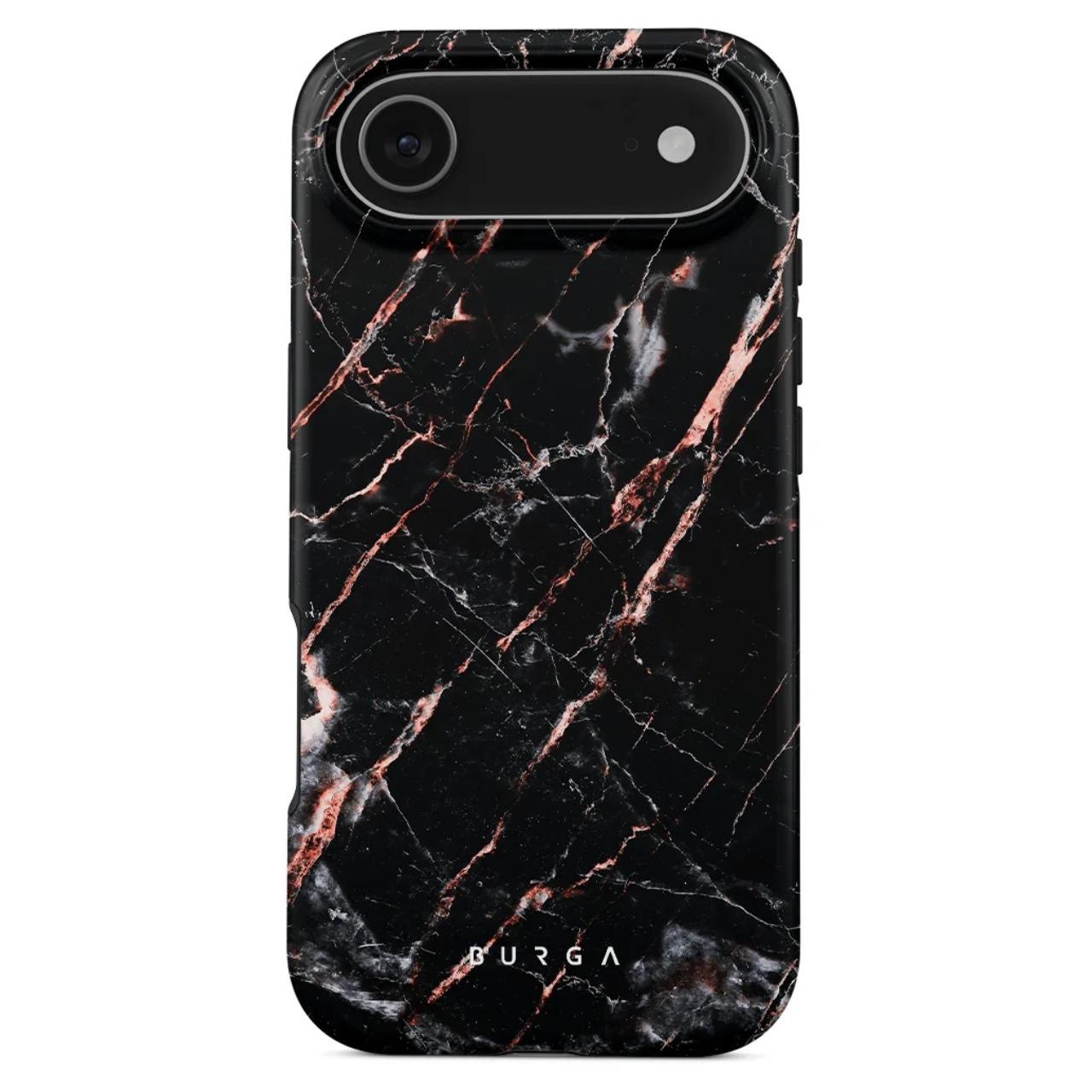 La funda de doble capa Magsafe con diseño de mármol en oro rosa para iPhone Air de Burga tiene un patrón único y colorido, y el interior de silicona protegerá el dispositivo durante las caídas, mientras que los biseles elevados de 2 mm ofrecen protección para la pantalla y la cámara.