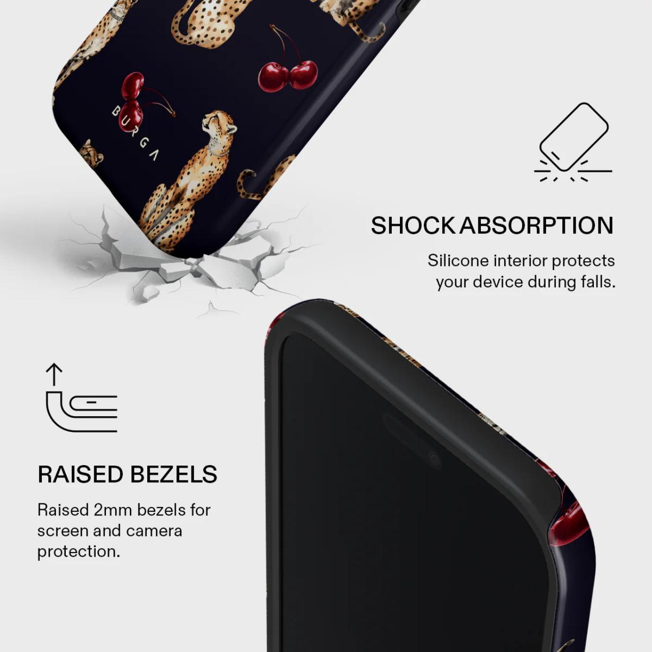 La funda de doble capa Magsafe Cougar para iPhone Air de Burga tiene un patrón único y colorido, y el interior de silicona protegerá el dispositivo durante caídas, mientras que los biseles elevados de 2 mm ofrecen protección para la pantalla y la cámara.