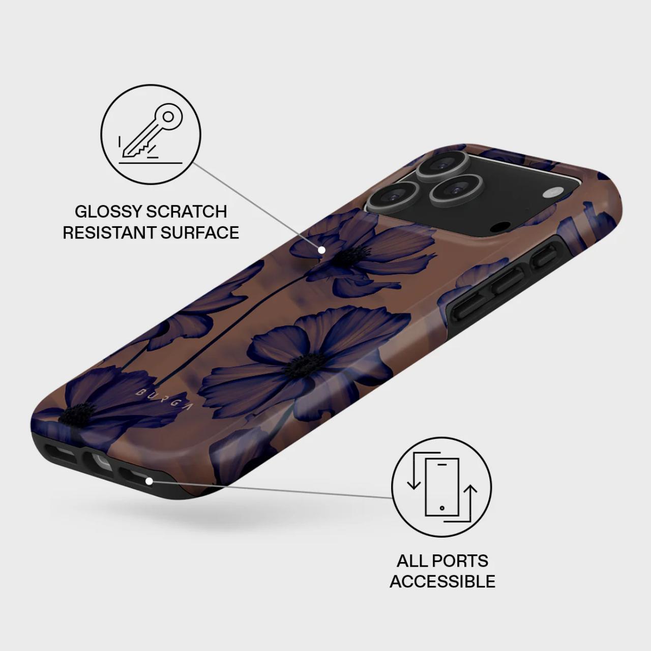 La funda de doble capa Magsafe Velvet Night para iPhone 17 Pro Max de Burga tiene un patrón único y colorido, y el interior de silicona protegerá el dispositivo durante las caídas, mientras que los marcos elevados de 2 mm ofrecen protección para la pantalla y la cámara.