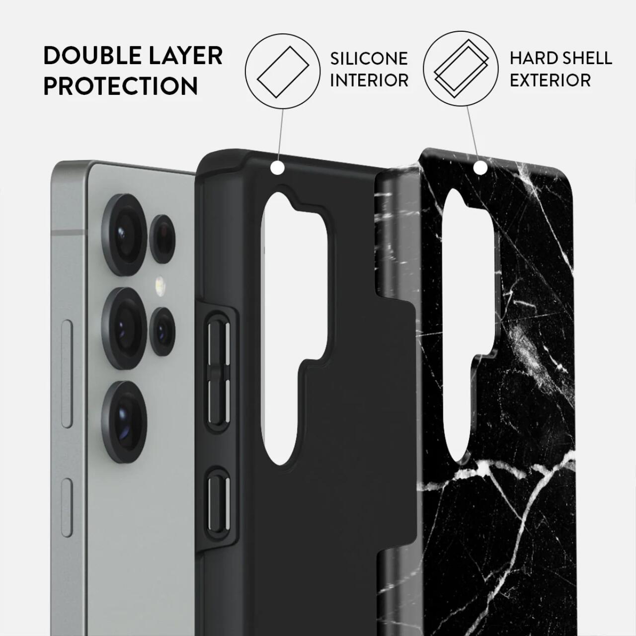 La funda Burga Dual Layer Noir Origin para Samsung Galaxy S25 Ultra está fabricada con materiales de calidad que evitan el desgaste de tu teléfono, y gracias a su diseño innovador sin duda atraerás todas las miradas.