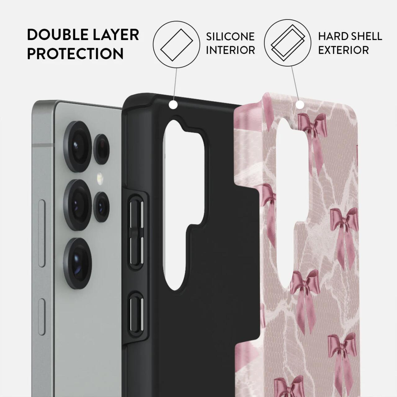 La funda Burga Dual Layer Ballerina para Samsung Galaxy S25 Ultra está fabricada con materiales de calidad que evitan el desgaste de tu teléfono, y gracias a su diseño innovador seguro atraerás todas las miradas.